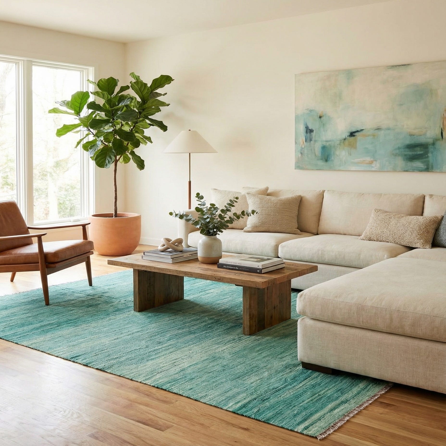 Primary color is Green. Colors in this rug include: Green, Beige.