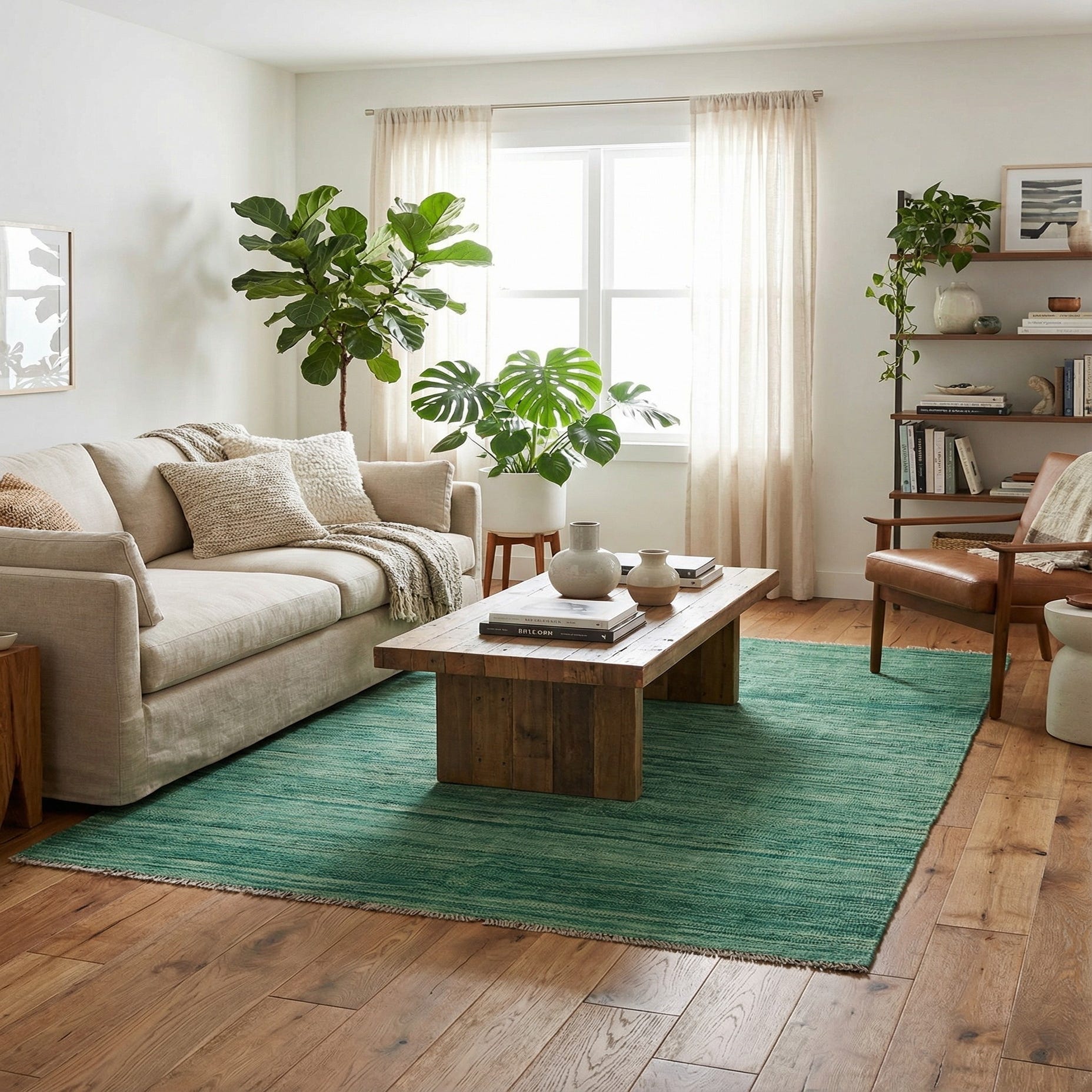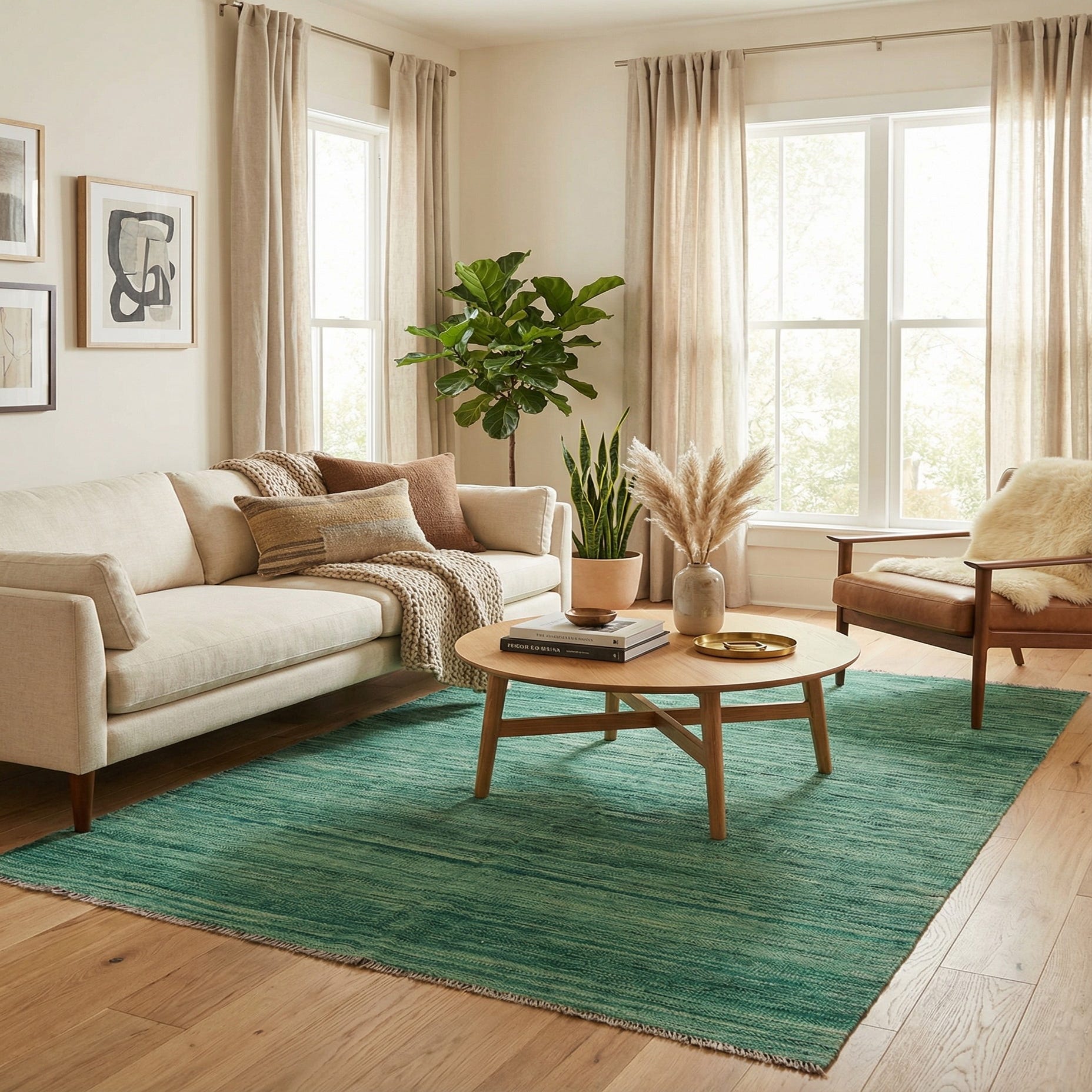 Primary color is Green. Colors in this rug include: Green, Beige.