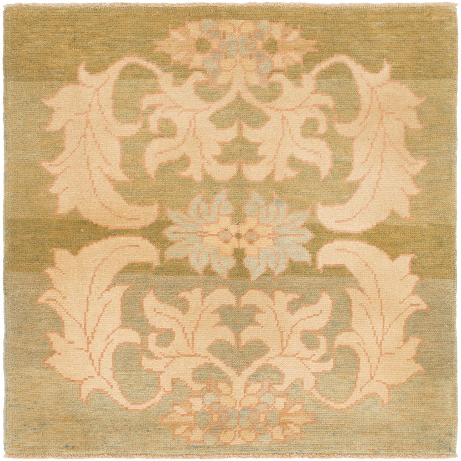 Primary color is Green. Colors in this rug include: Green, Beige, Cream, Peach, Light Blue.