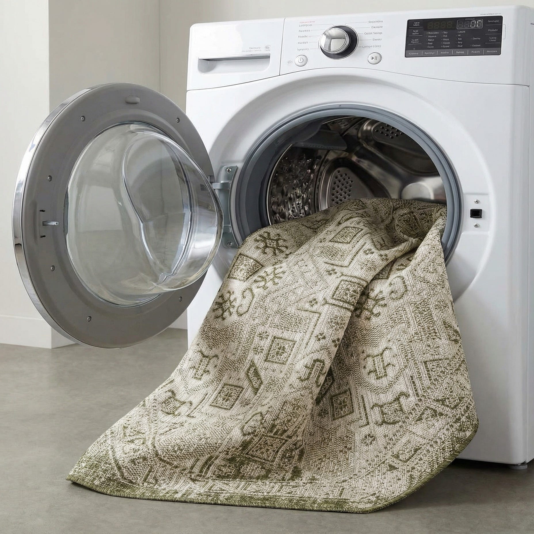 Primary color is Green. Colors in this rug include: Green, Ivory.