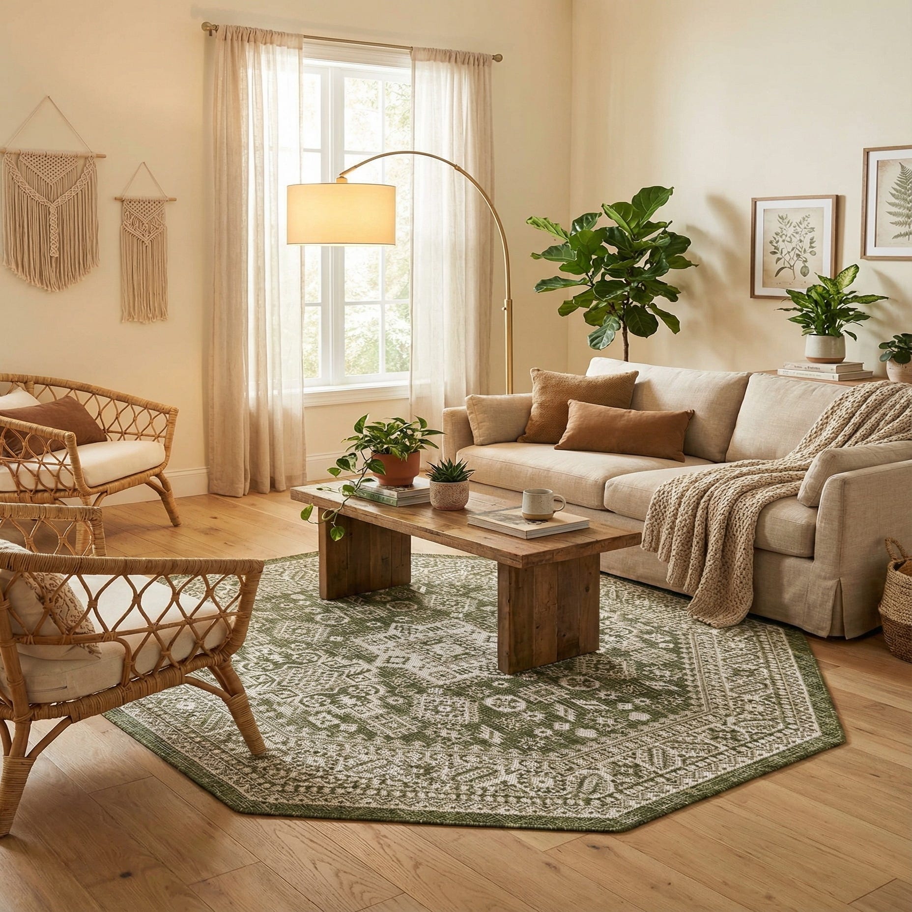 5' 3 x 5' 3 Washable Aztec Indoor / Outdoor Octagon Rug