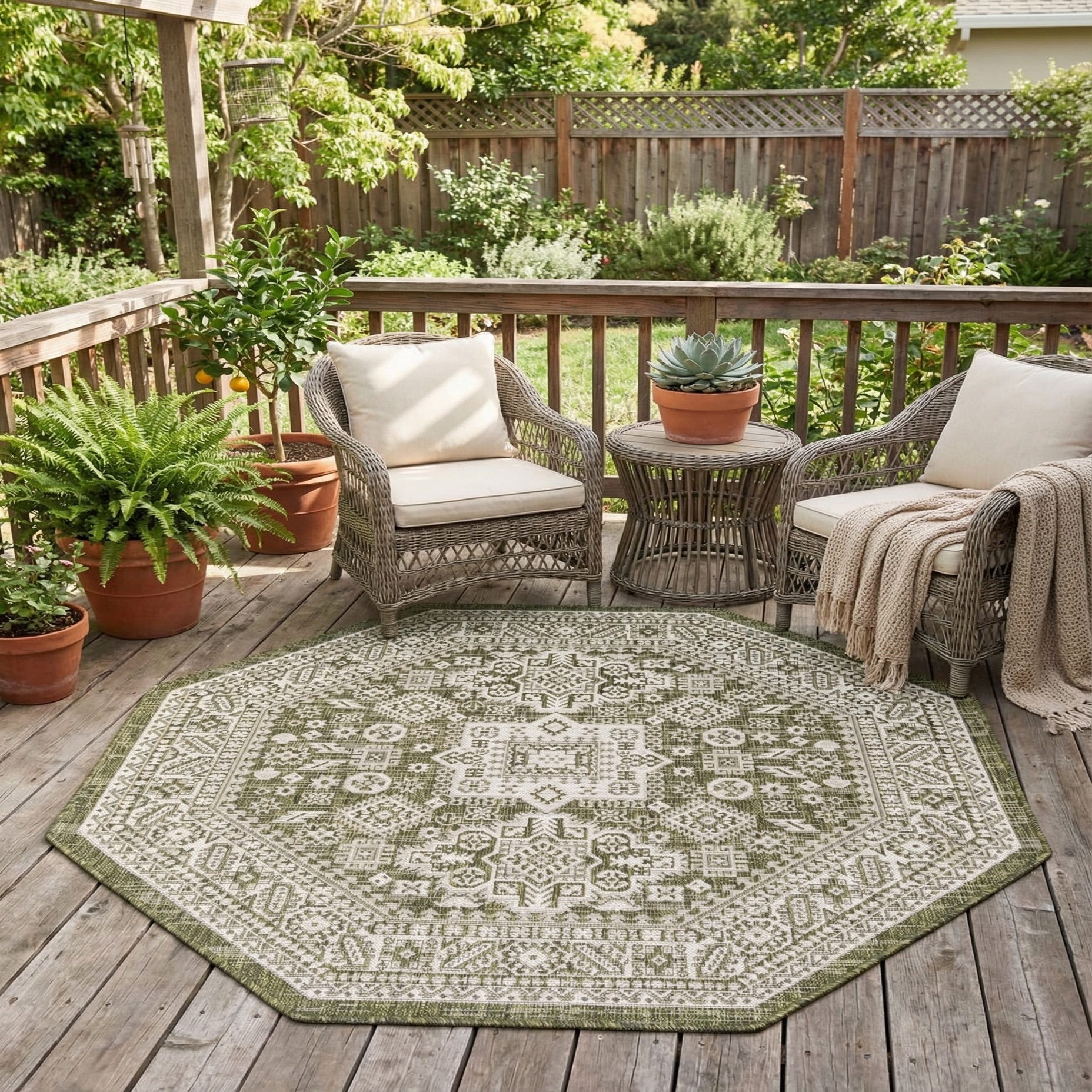5' 3 x 5' 3 Washable Aztec Indoor / Outdoor Octagon Rug