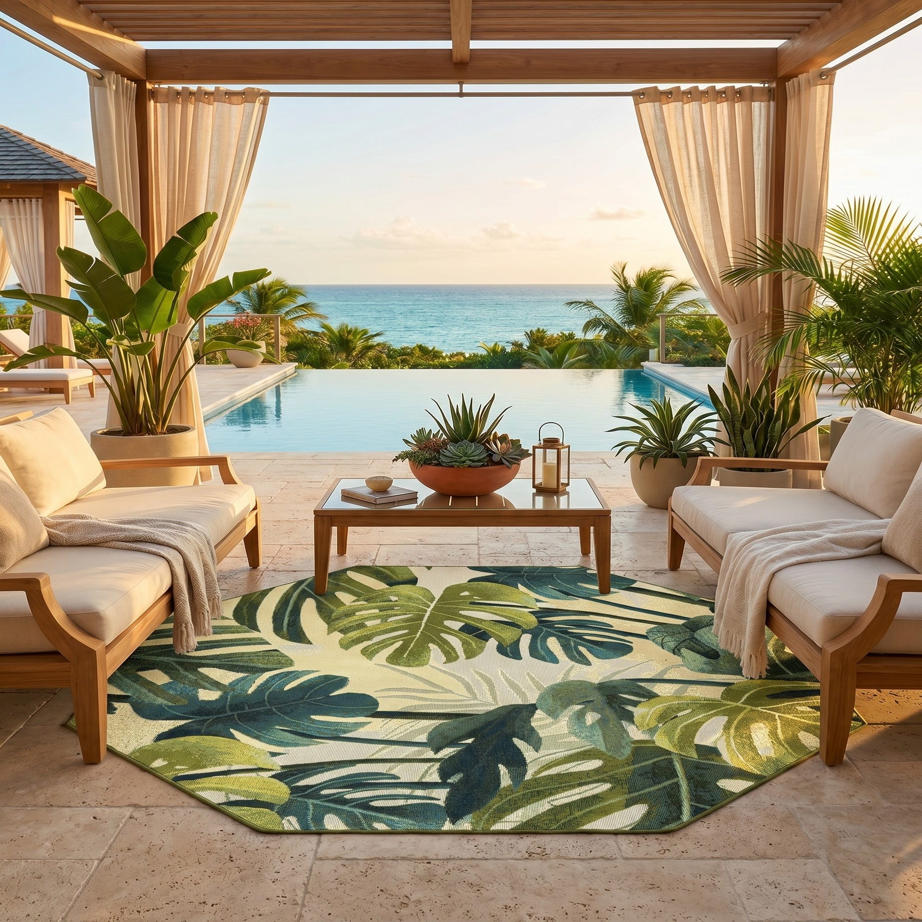 5' 3 x 5' 3 Easy-Clean Botanical Indoor / Outdoor Octagon Rug