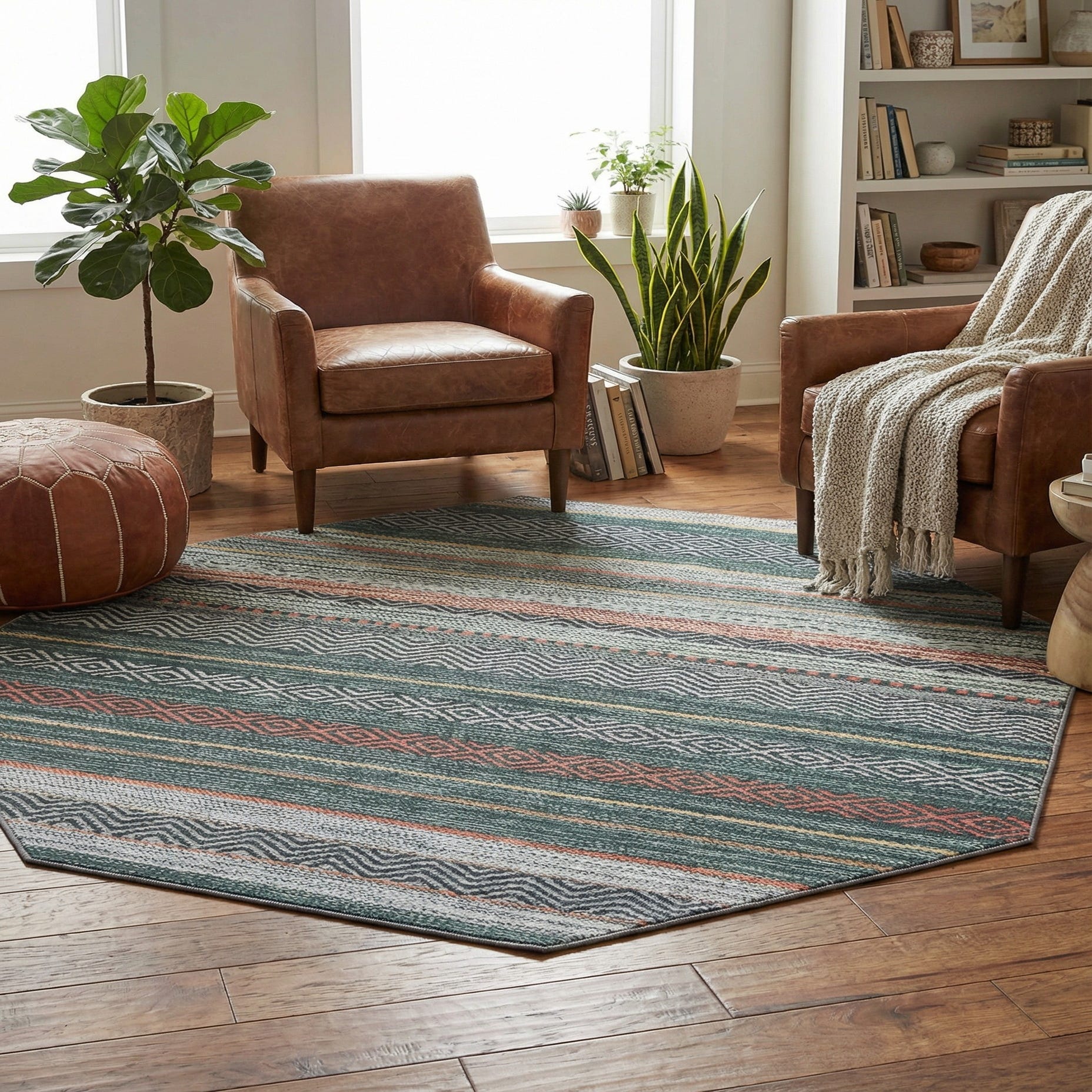 Detail image of 5' x 5'  Washable Yara Octagon Rug