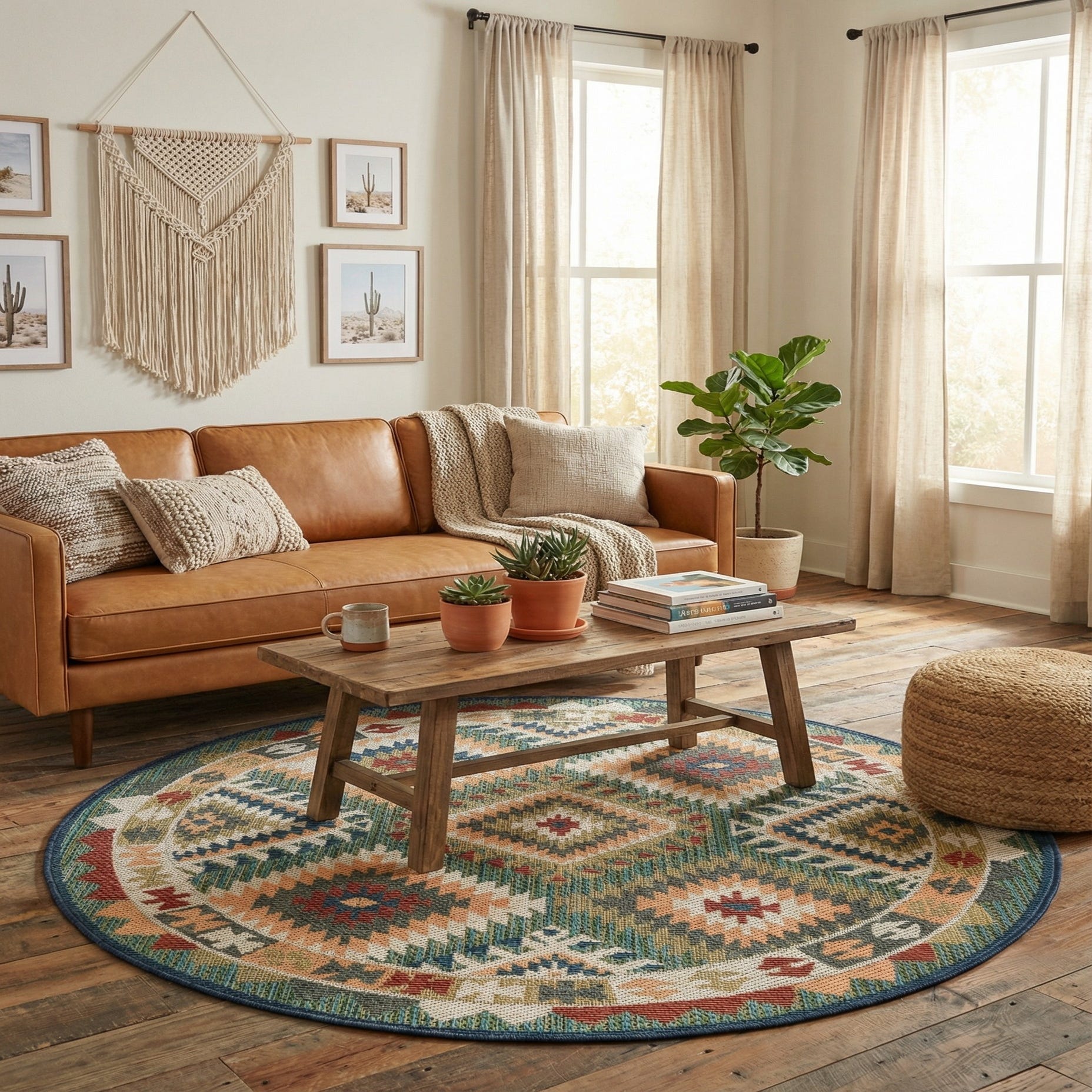 5' 3 x 5' 3 Washable Baja Indoor / Outdoor Round Rug