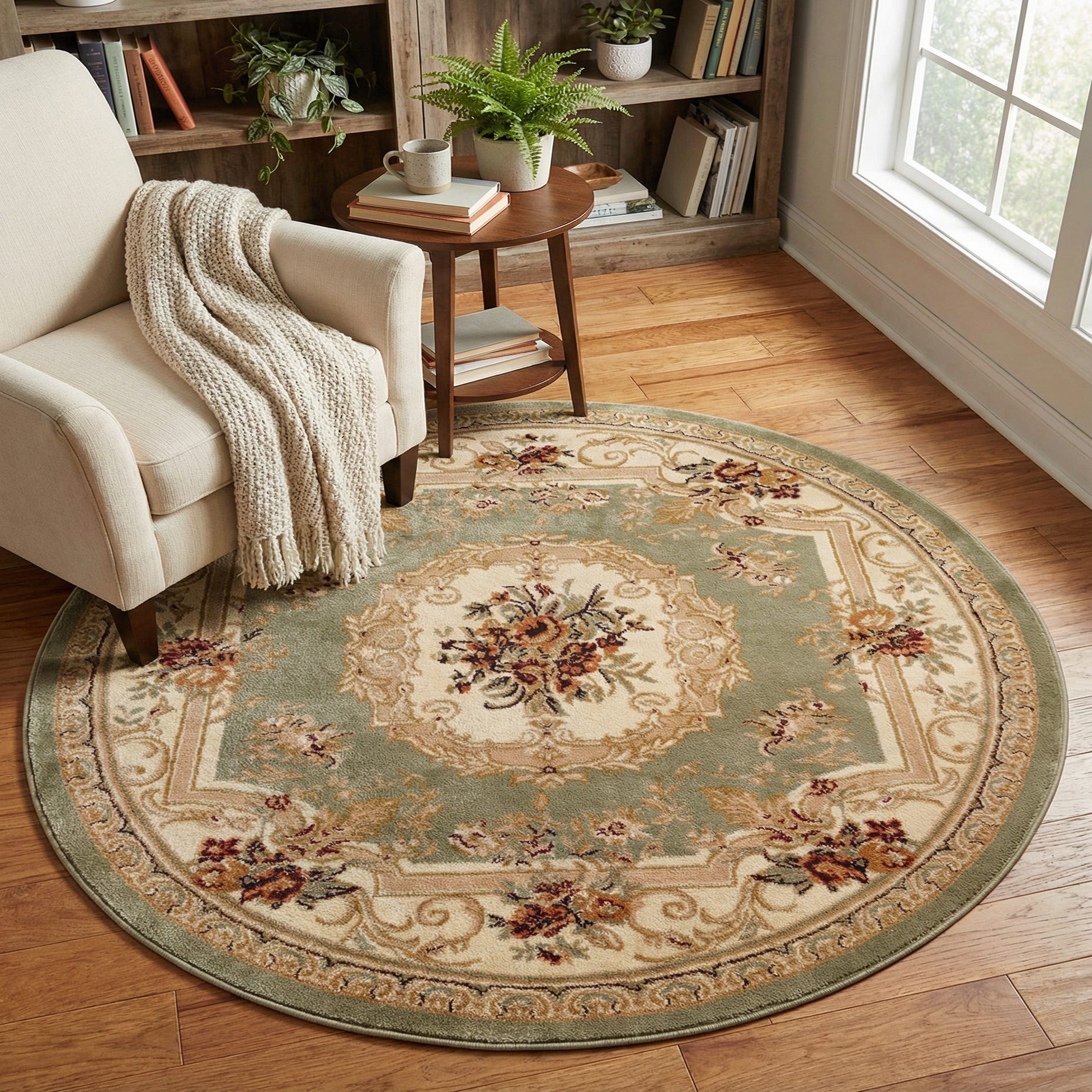 5' 3 x 5' 3 Classic Aubusson Round Rug