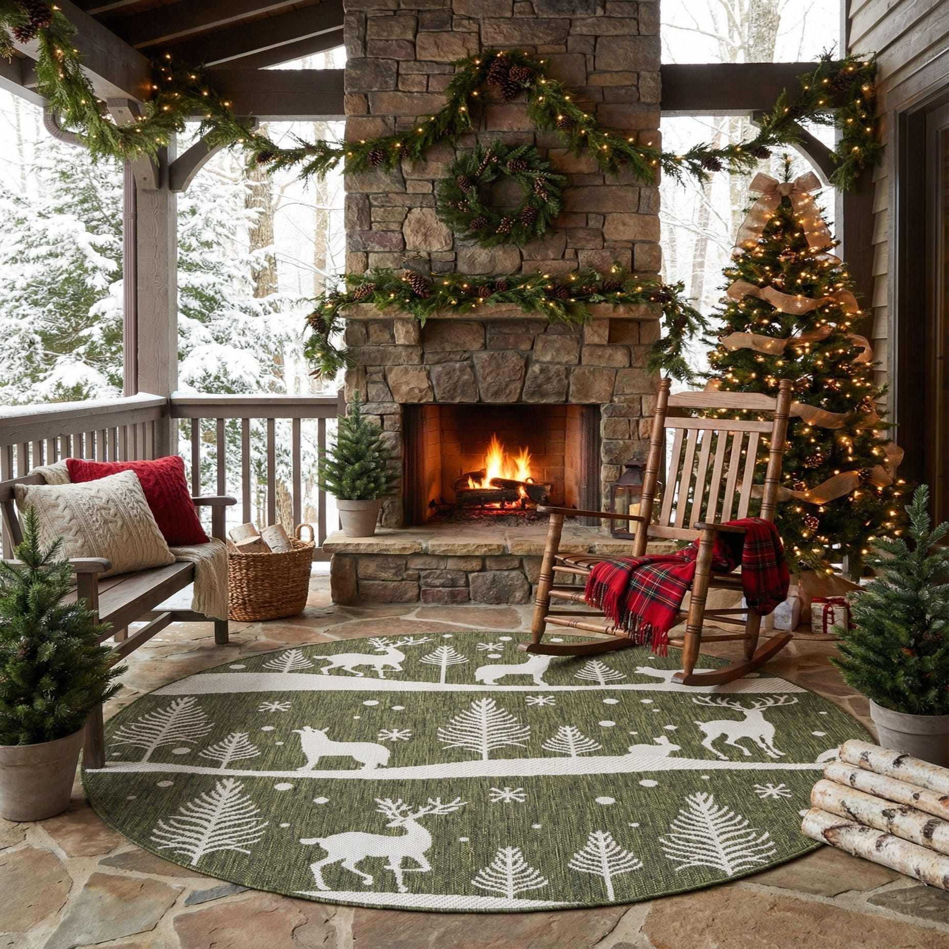 Detail image of 5' 3 x 5' 3  Washable Holiday Indoor / Outdoor Round Rug