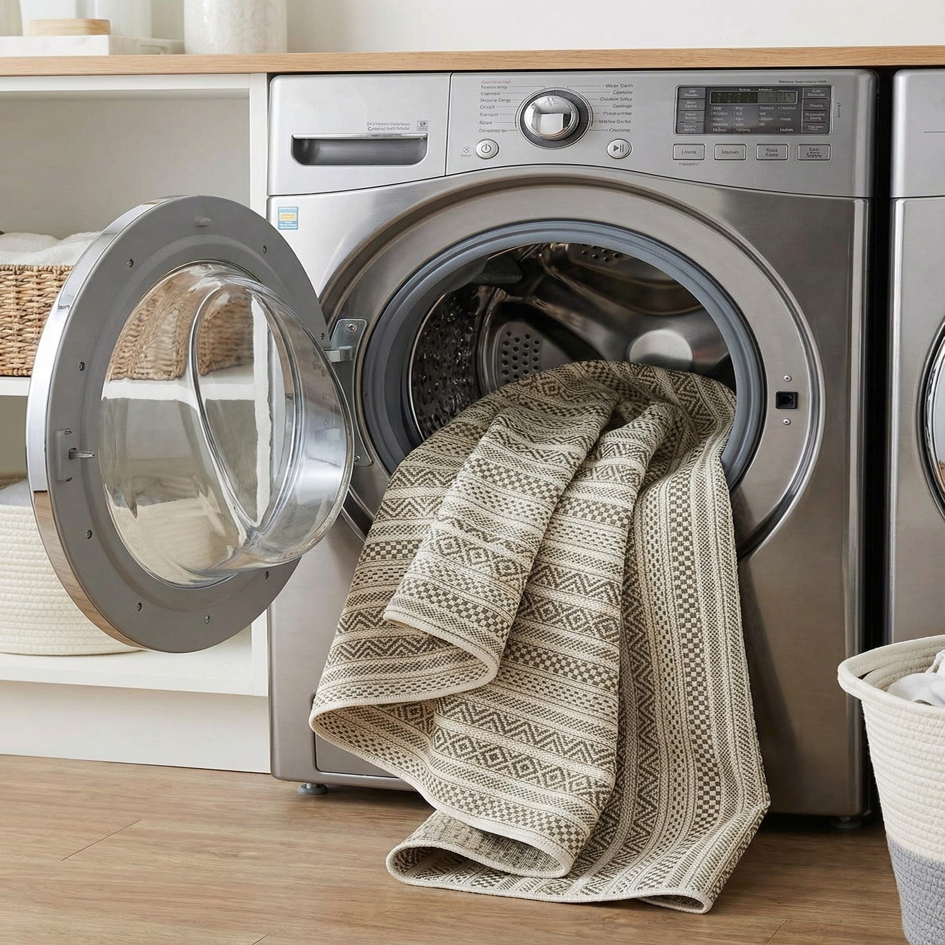 5' 3 x 5' 3 Washable Striped Indoor / Outdoor Round Rug