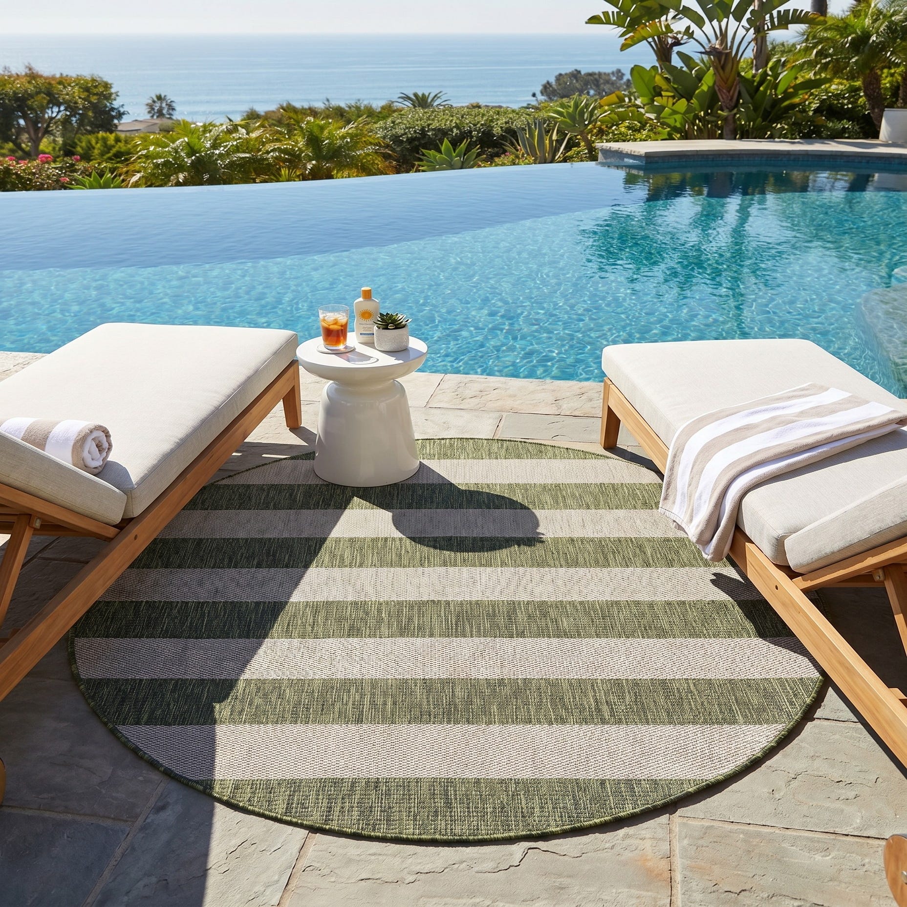 5' 3 x 5' 3 Easy-Clean Striped Indoor / Outdoor Round Rug