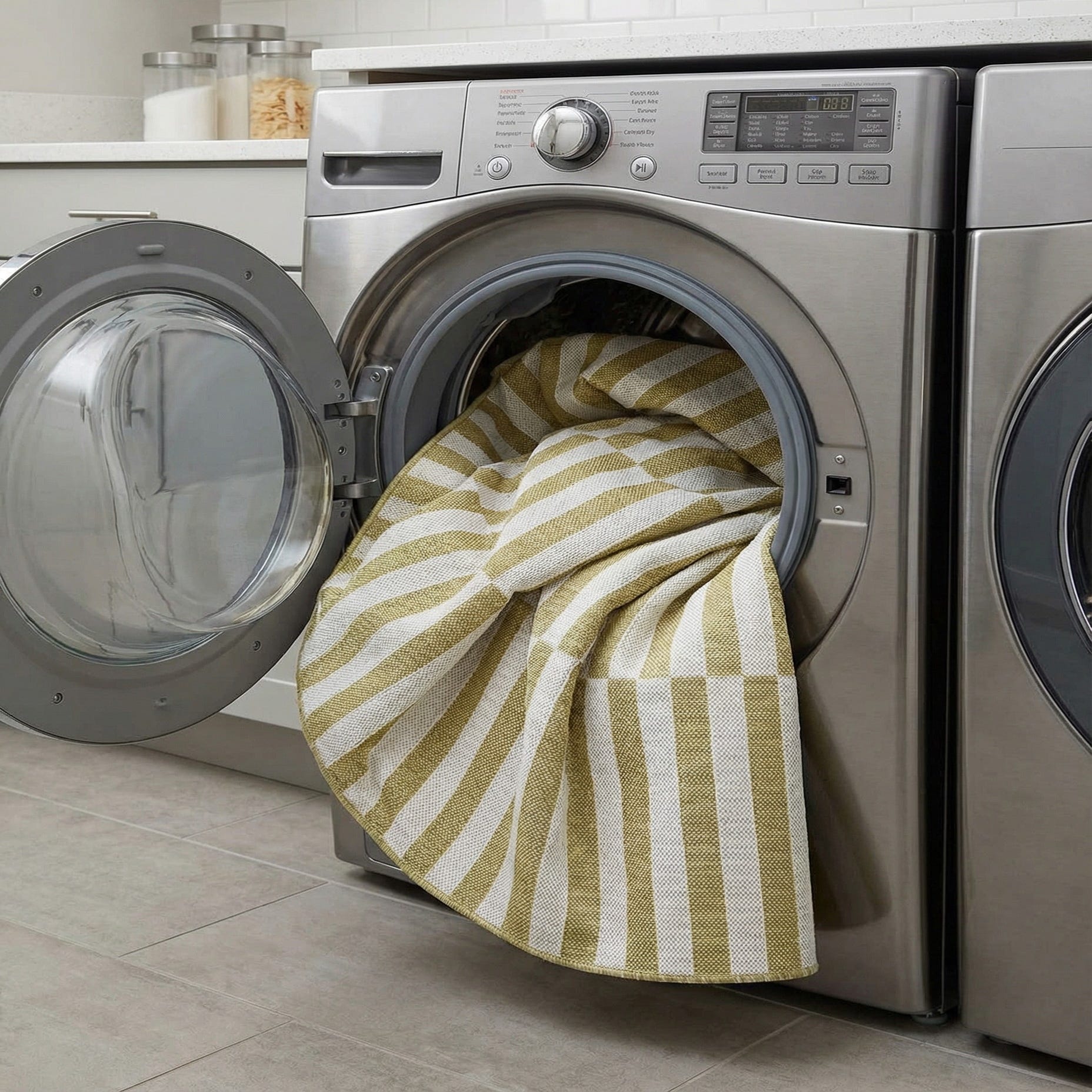 5' 3 x 5' 3 Washable Striped Indoor / Outdoor Round Rug