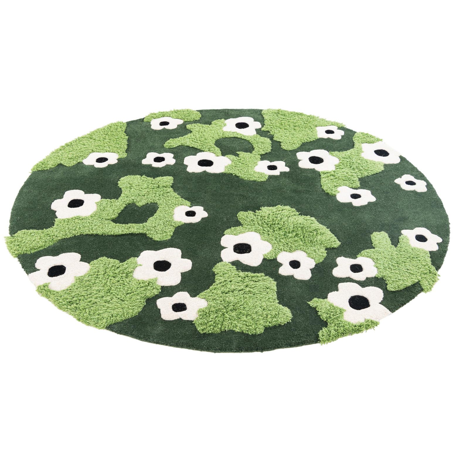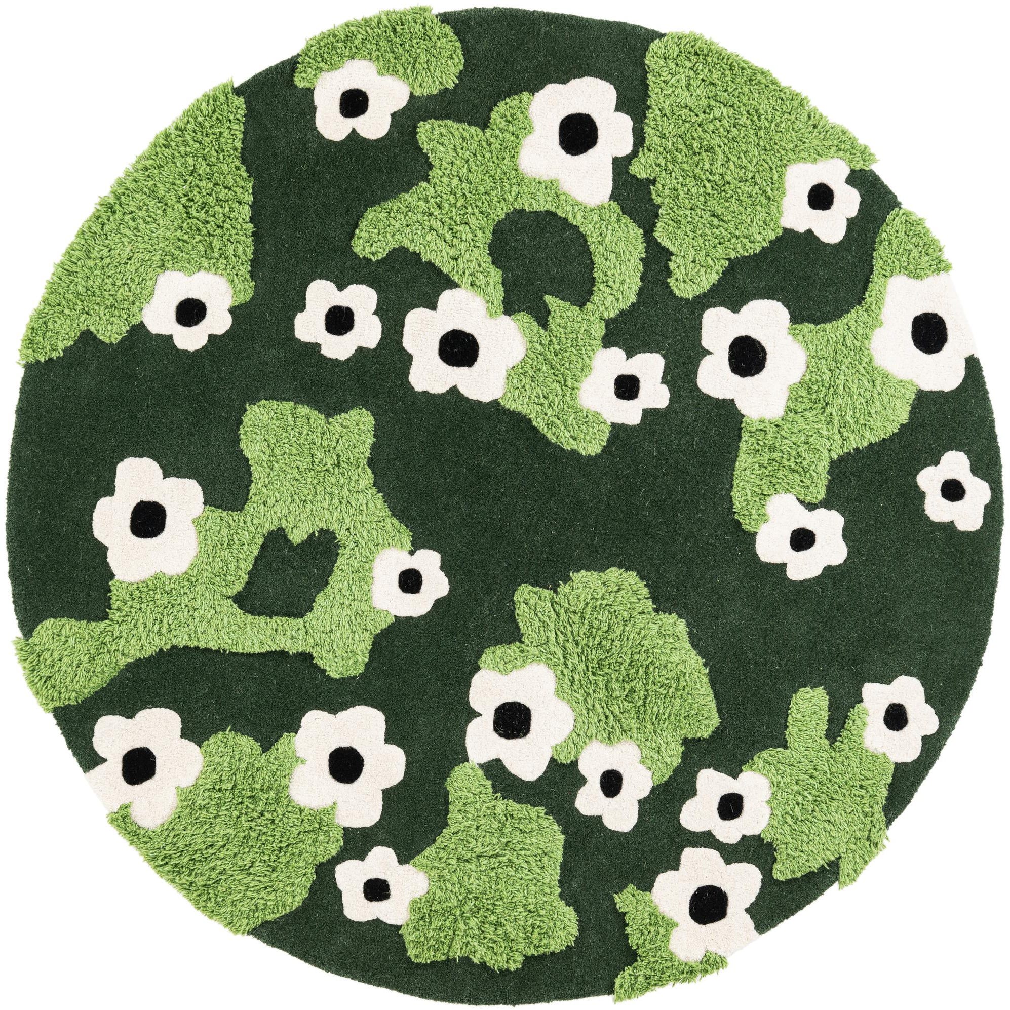 Primary color is Green. Colors in this rug include: Green, Light Green, Ivory, Black.