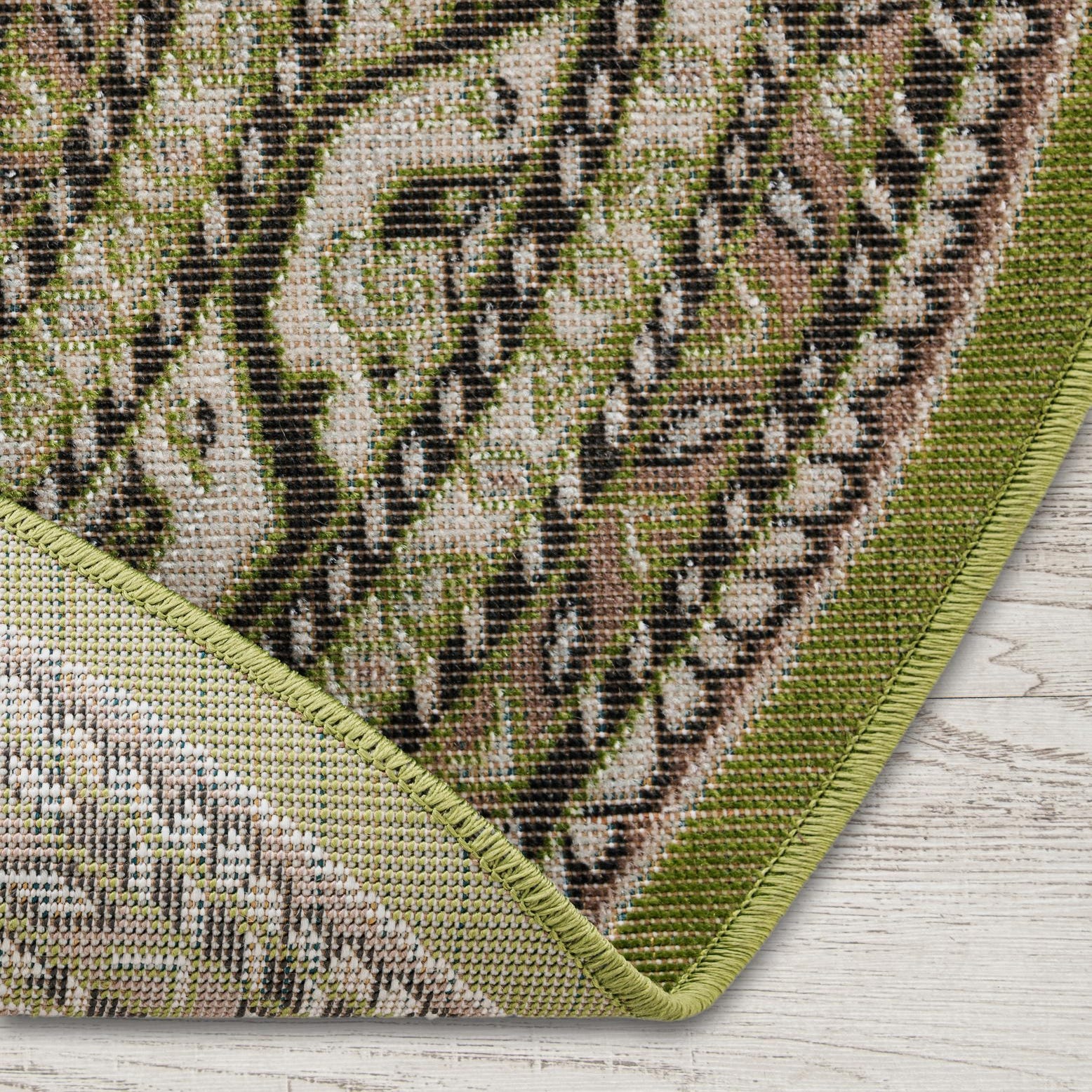 Primary color is Green. Colors in this rug include: Green, Gray, Ivory.