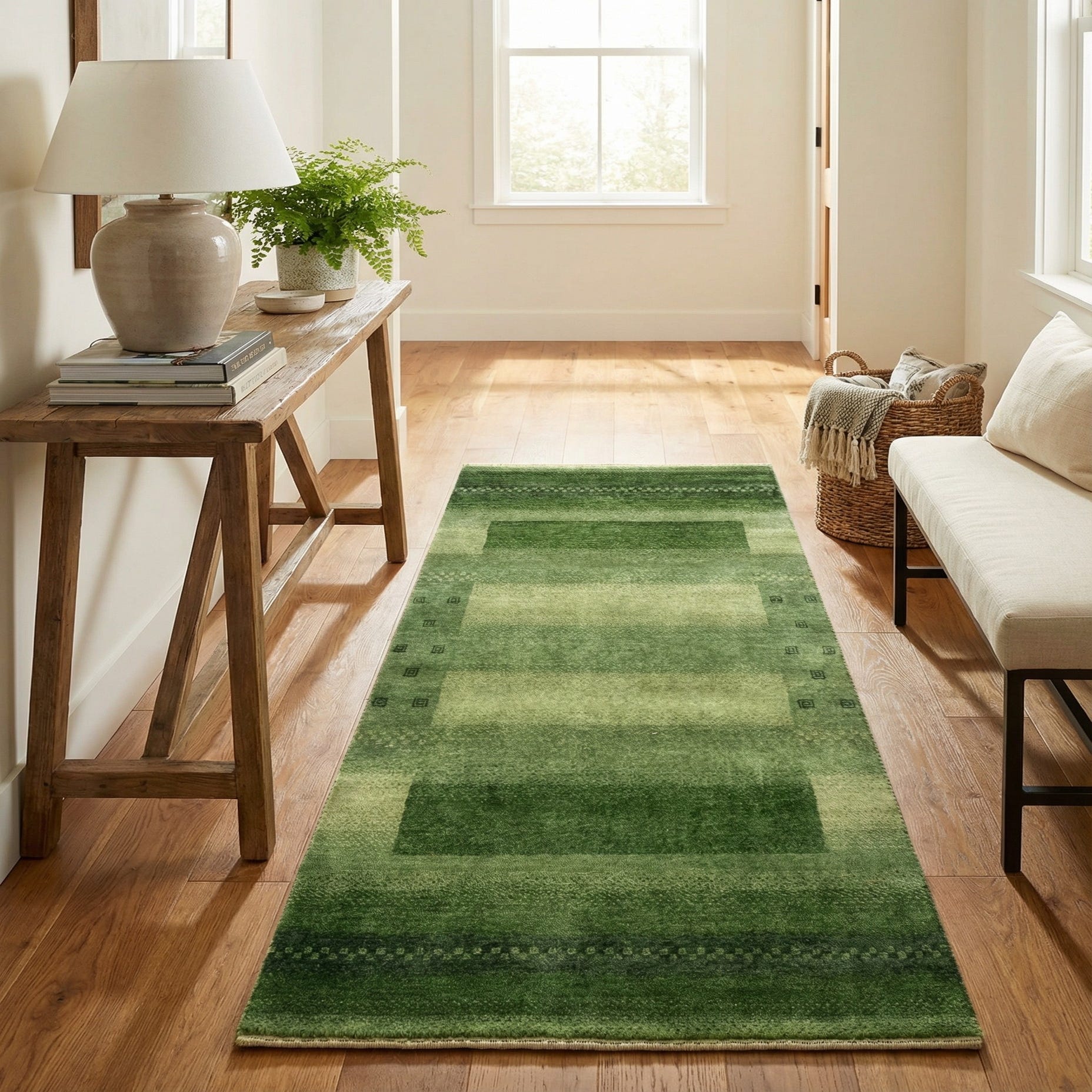 Primary color is Green. Colors in this rug include: Green, Light Green.