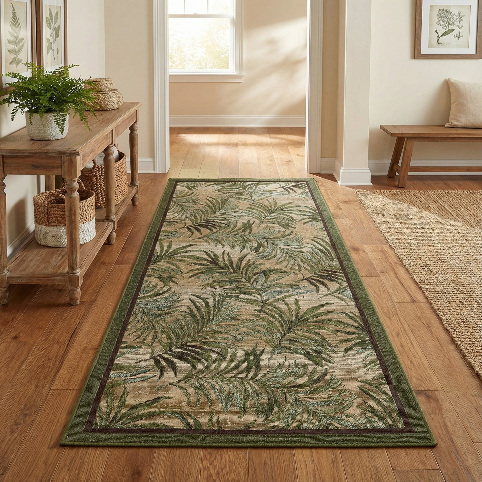 Primary image 2' 7 x 5' 3  Washable Botanical Indoor / Outdoor Runner Rug
