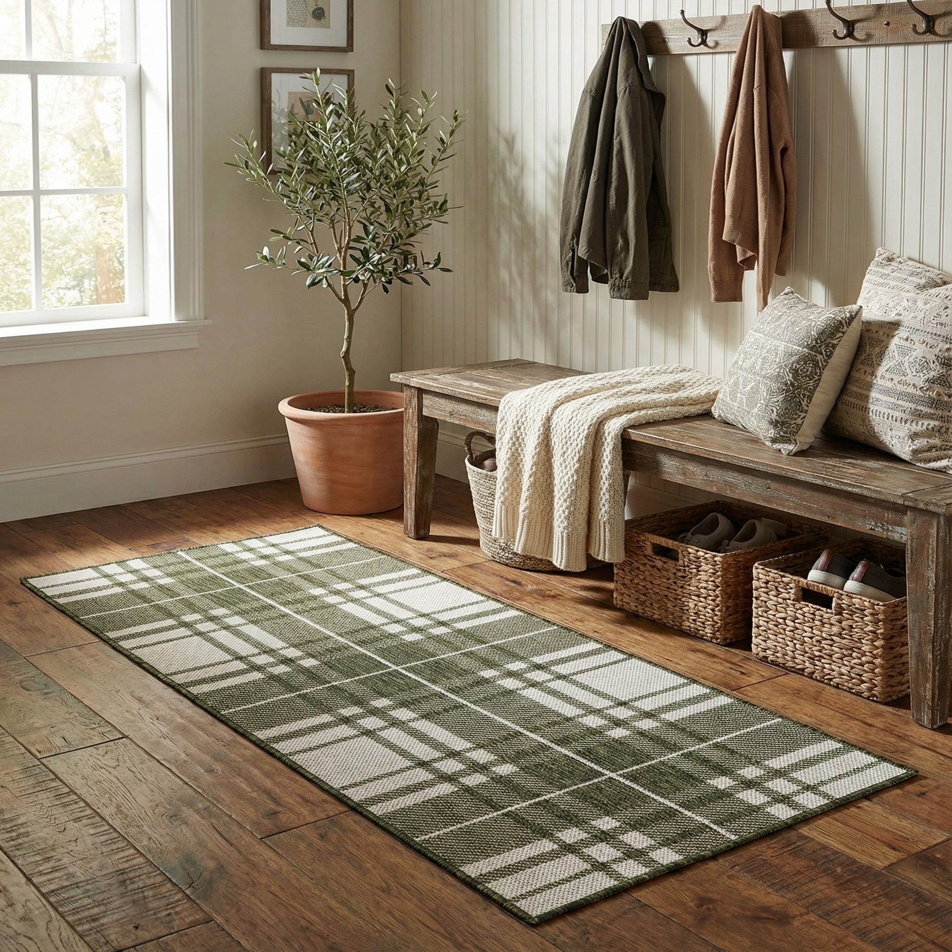 2' x 5' 3 Washable Checkered Indoor / Outdoor Runner Rug
