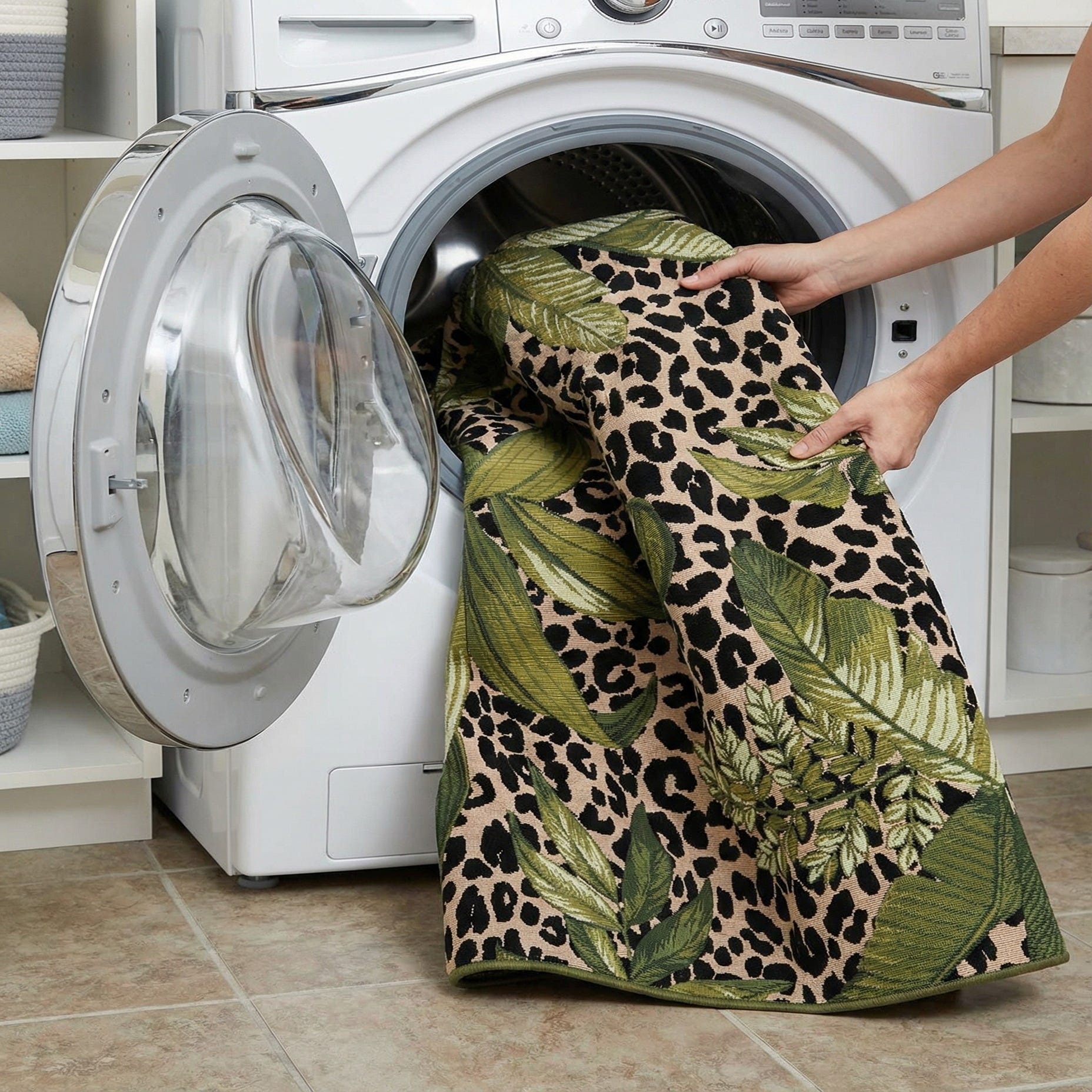 5' 3 x 5' 3 Washable Botanical Indoor / Outdoor Square Rug