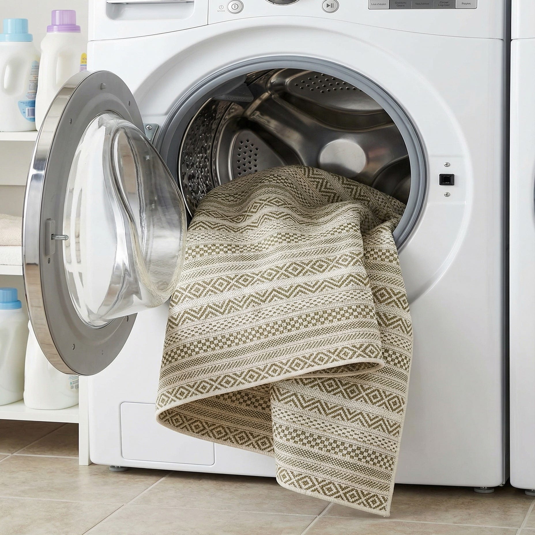 5' 3 x 5' 3 Washable Striped Indoor / Outdoor Square Rug