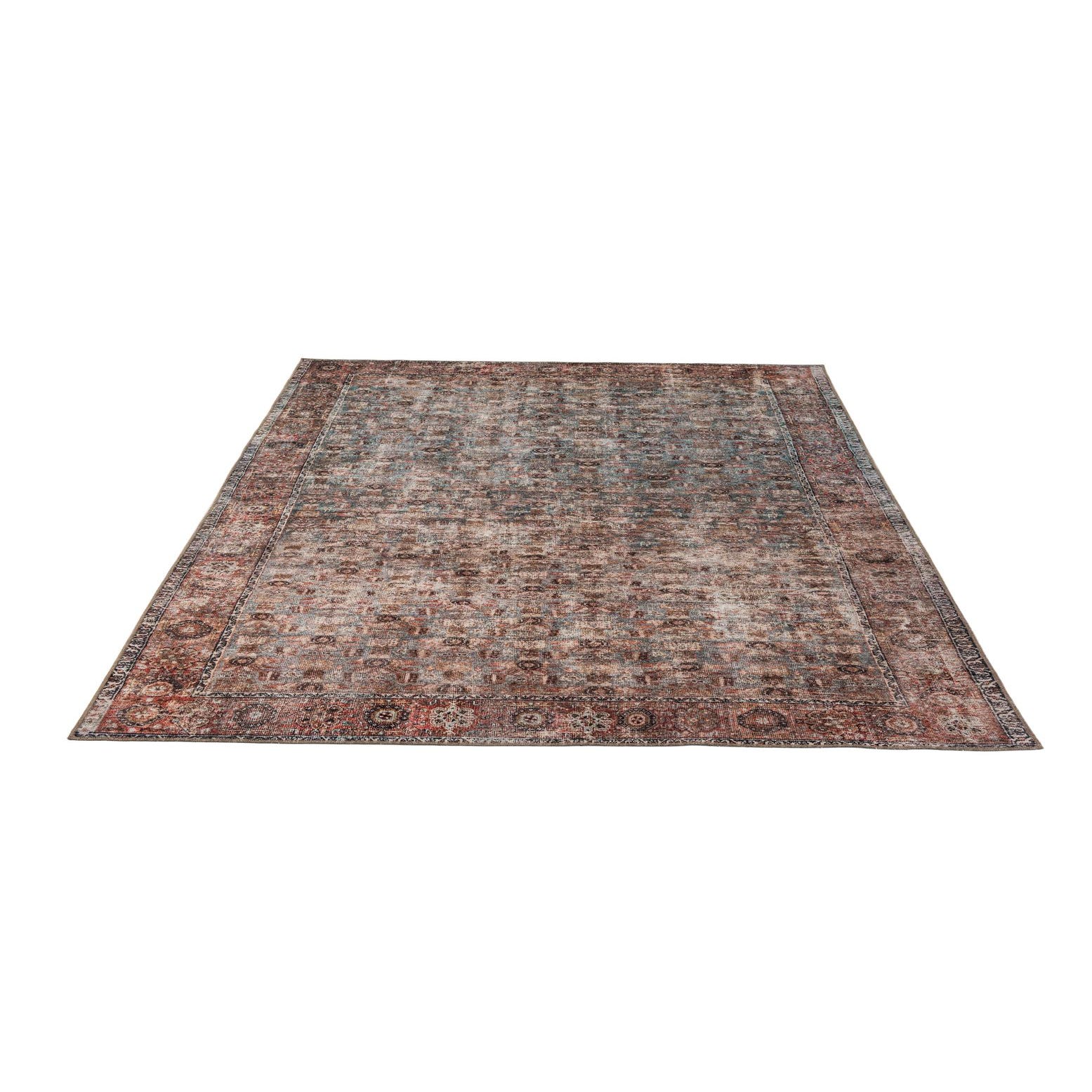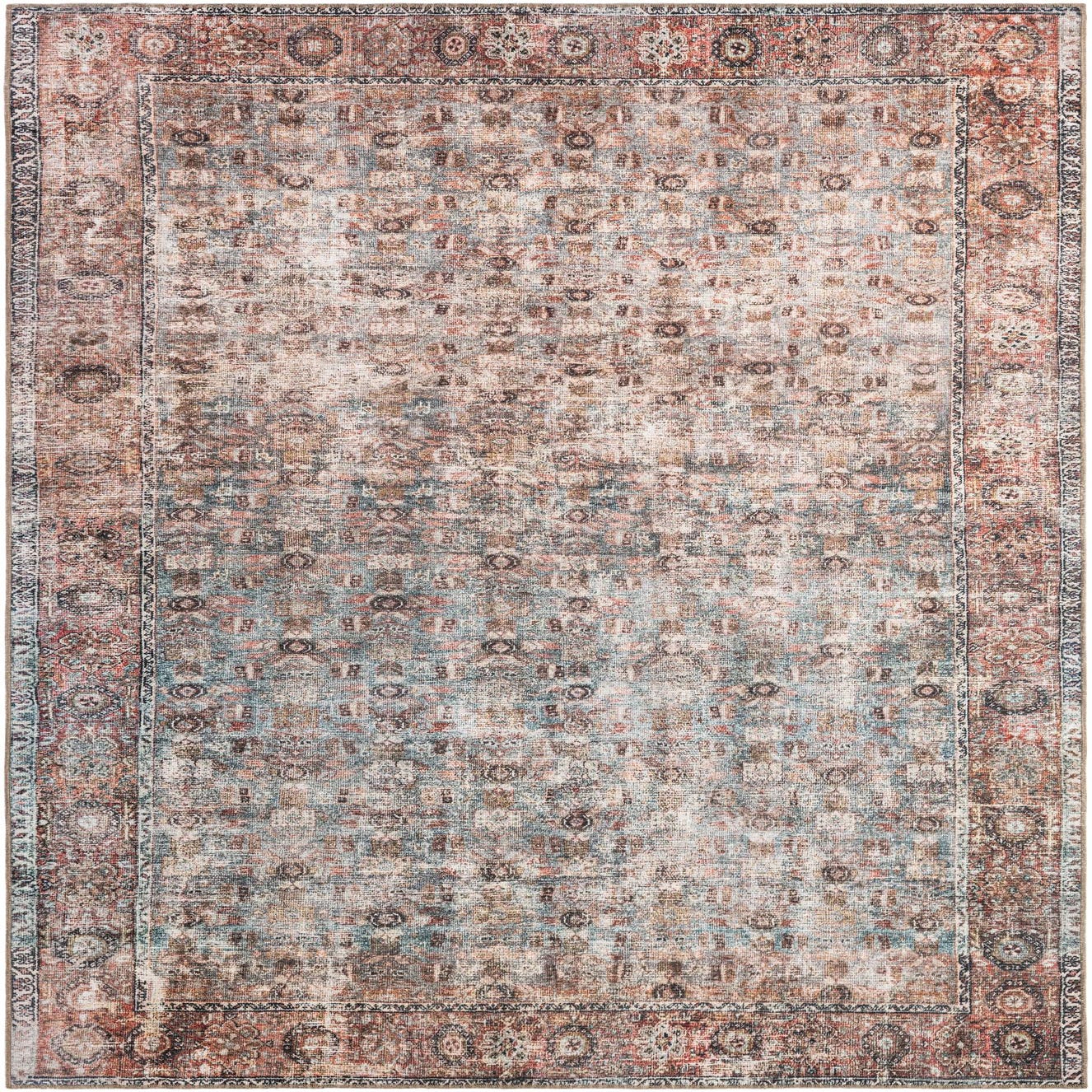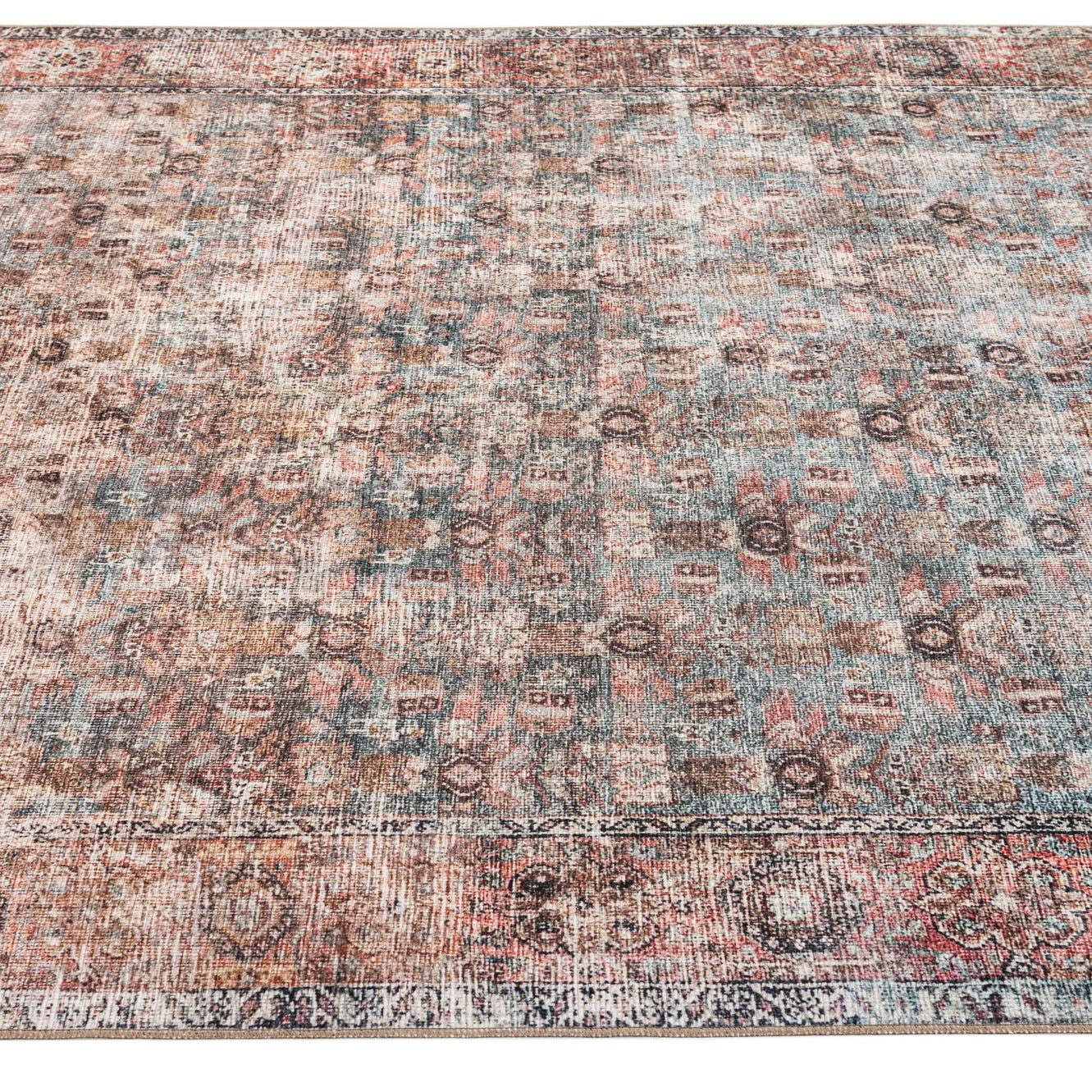 Primary color is Green. Colors in this rug include: Green, Beige, Brown, Blue, Ivory.