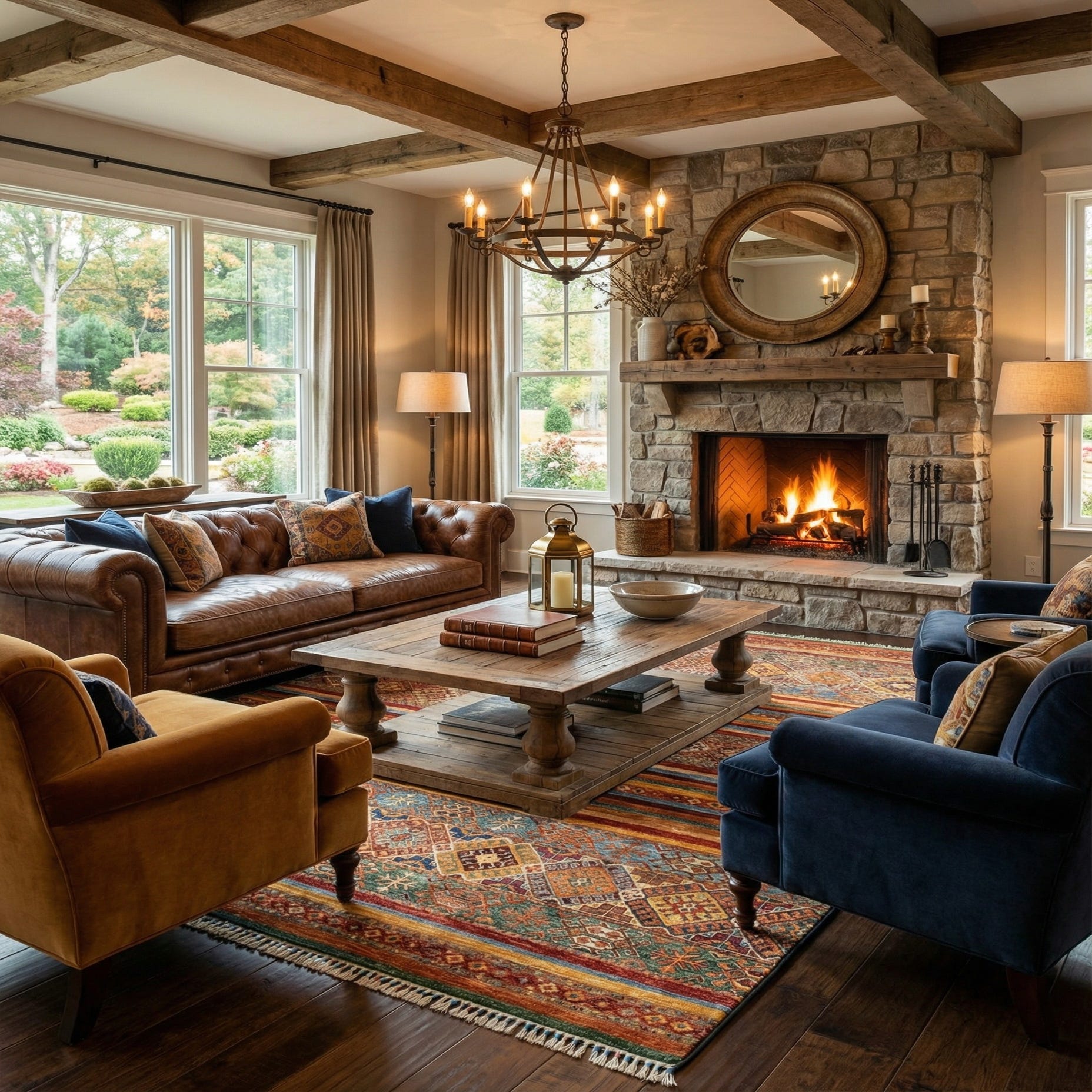 Primary color is Green. Colors in this rug include: Green, Orange, Brown, Blue, Cream, Burgundy, Peach.