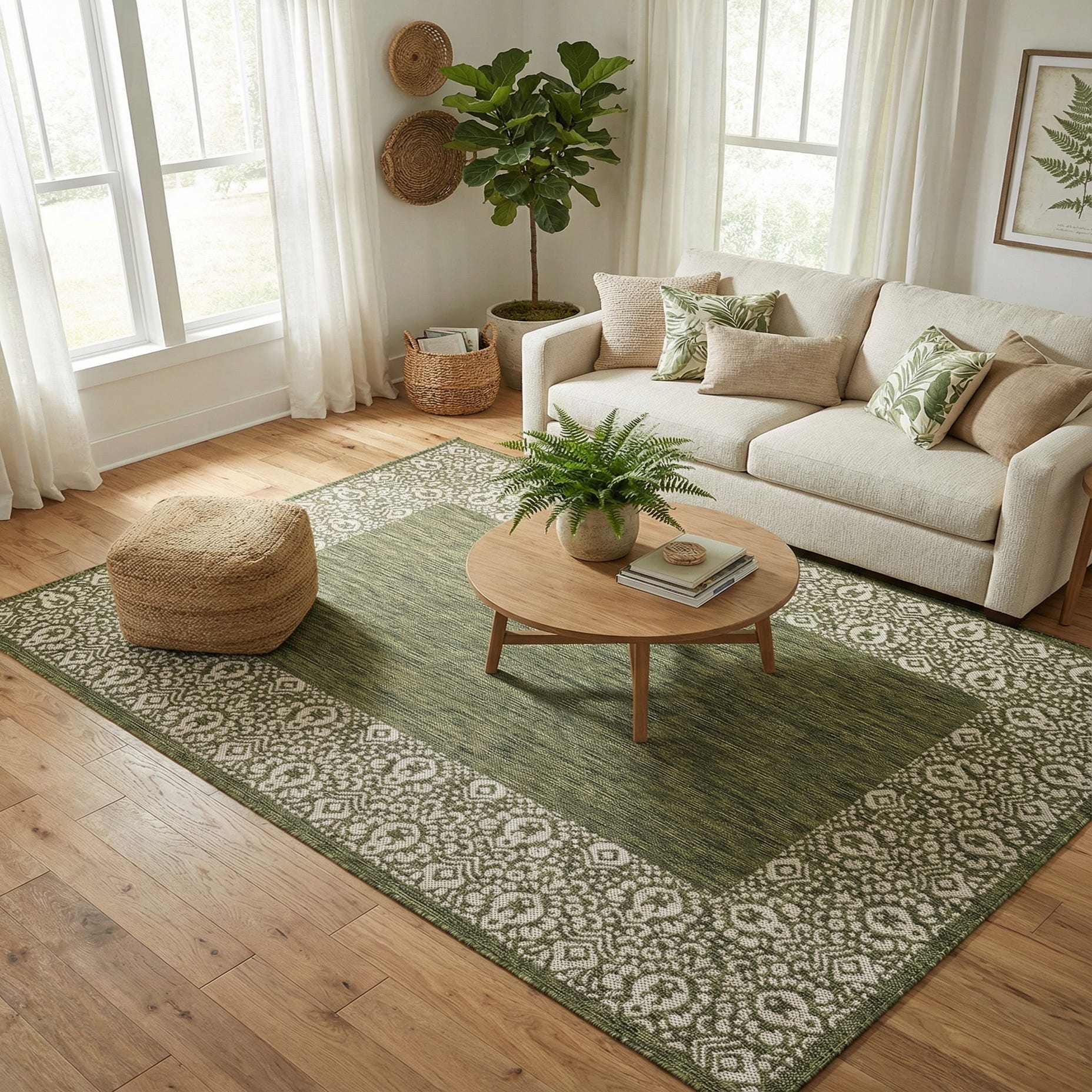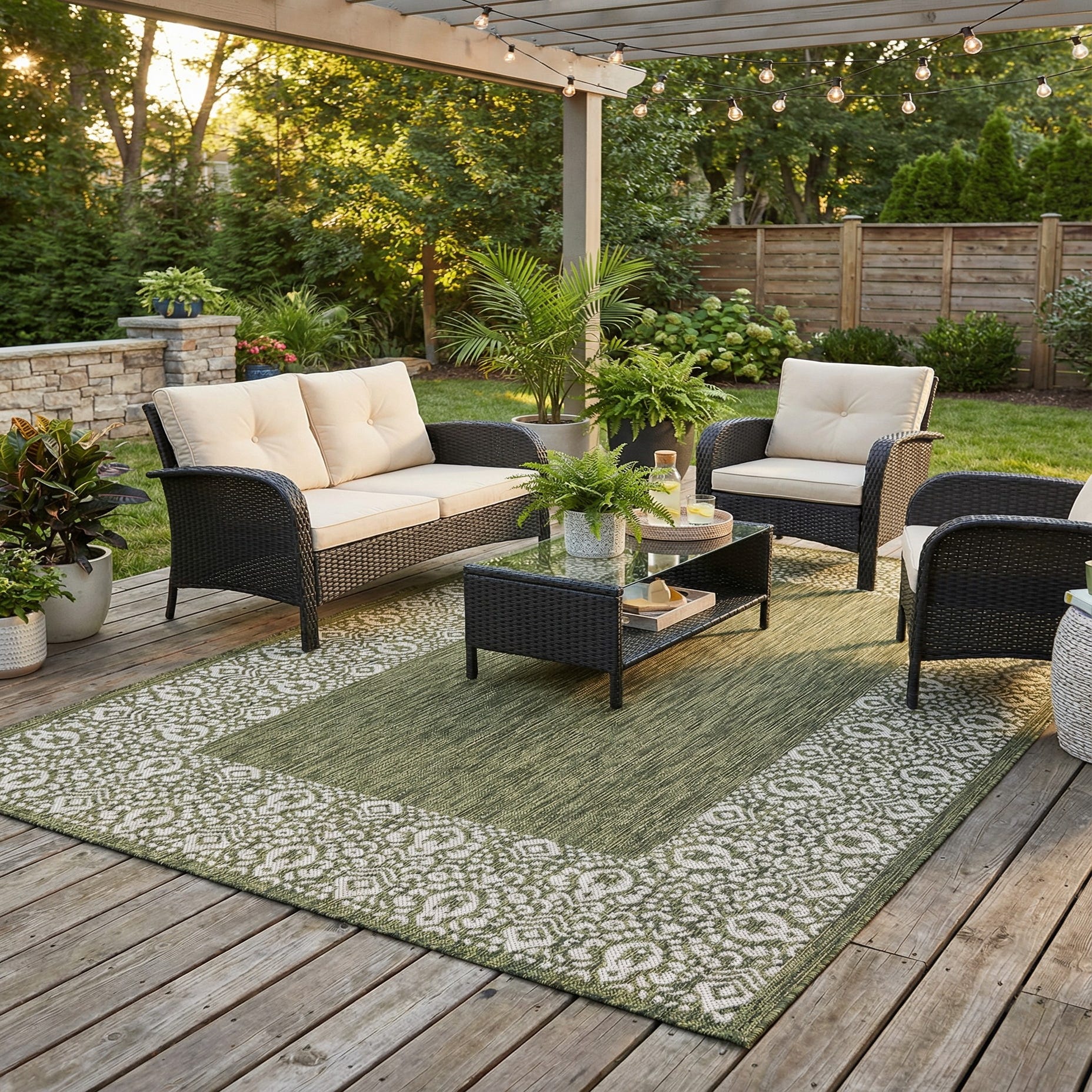 5' 3 x 8' Washable Border Indoor / Outdoor Rug