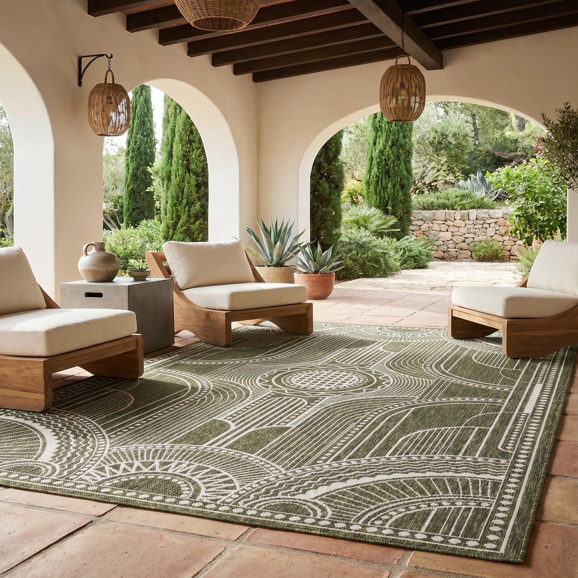 5' 3 x 8' Easy-Clean Traditional Indoor / Outdoor Rug