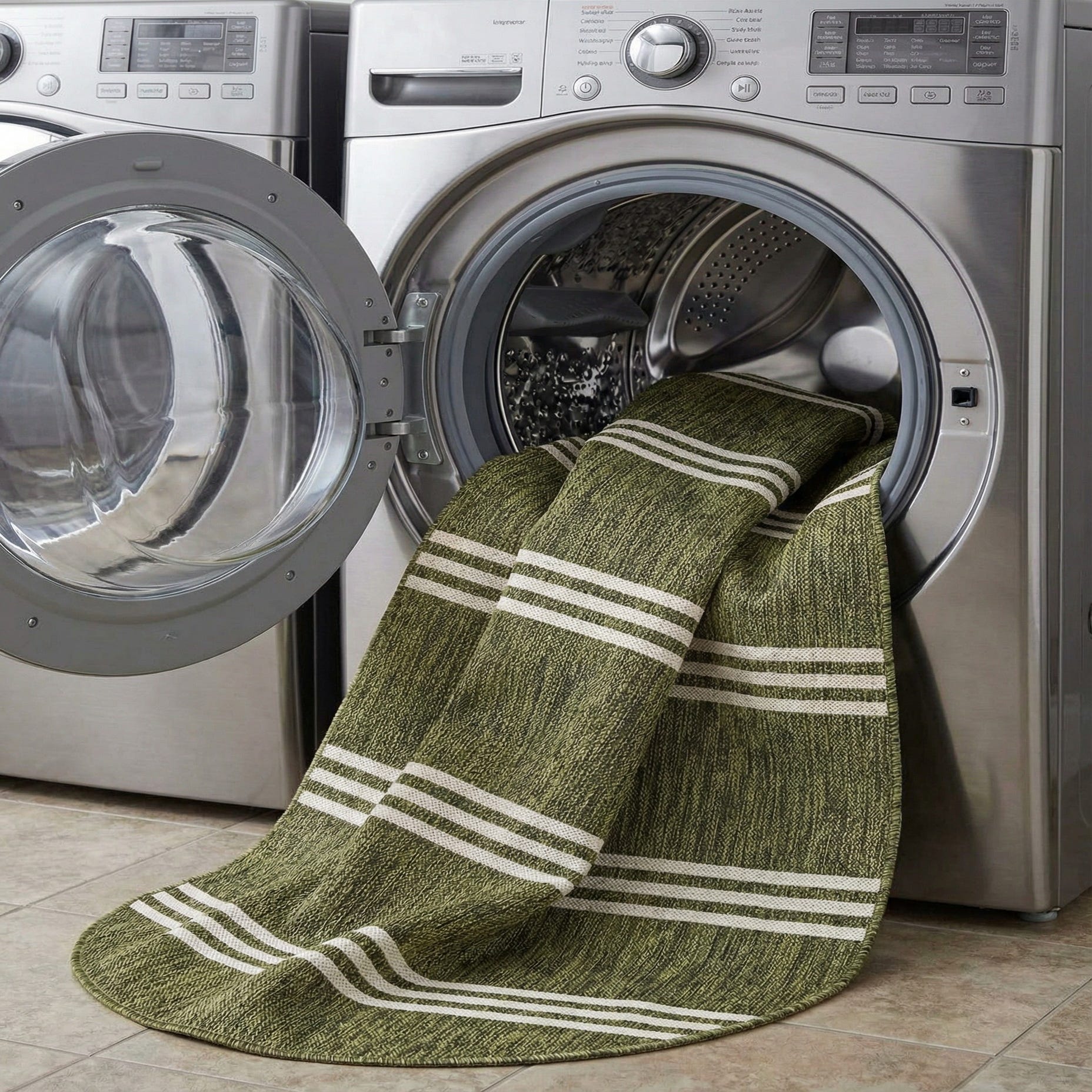 Primary color is Green. Colors in this rug include: Green, Ivory.