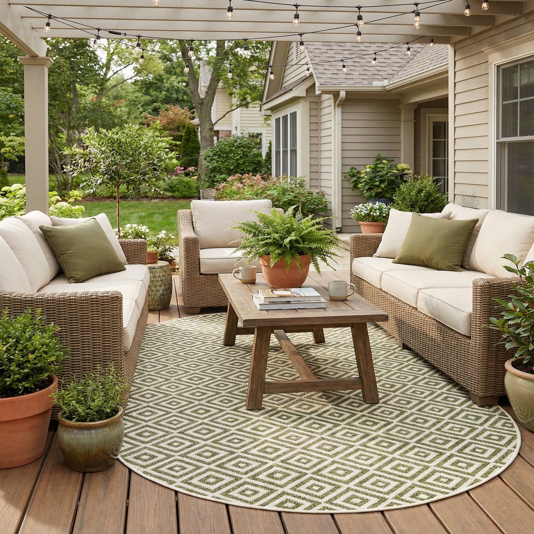 Primary color is Green. Colors in this rug include: Green, Ivory.