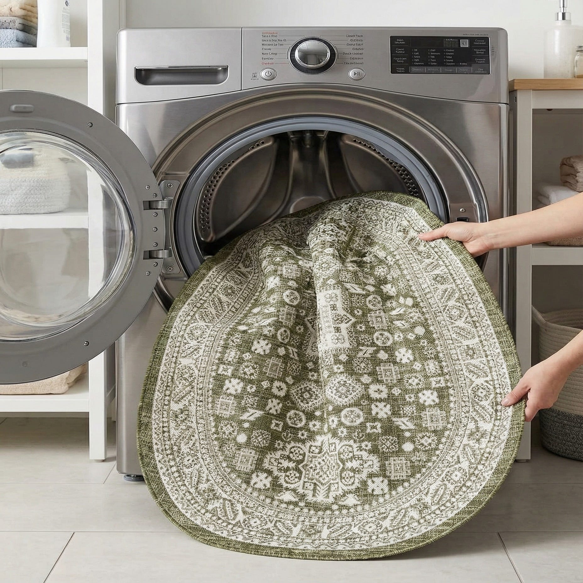 Primary image 5' 3 x 8'  Washable Aztec Indoor / Outdoor Oval Rug