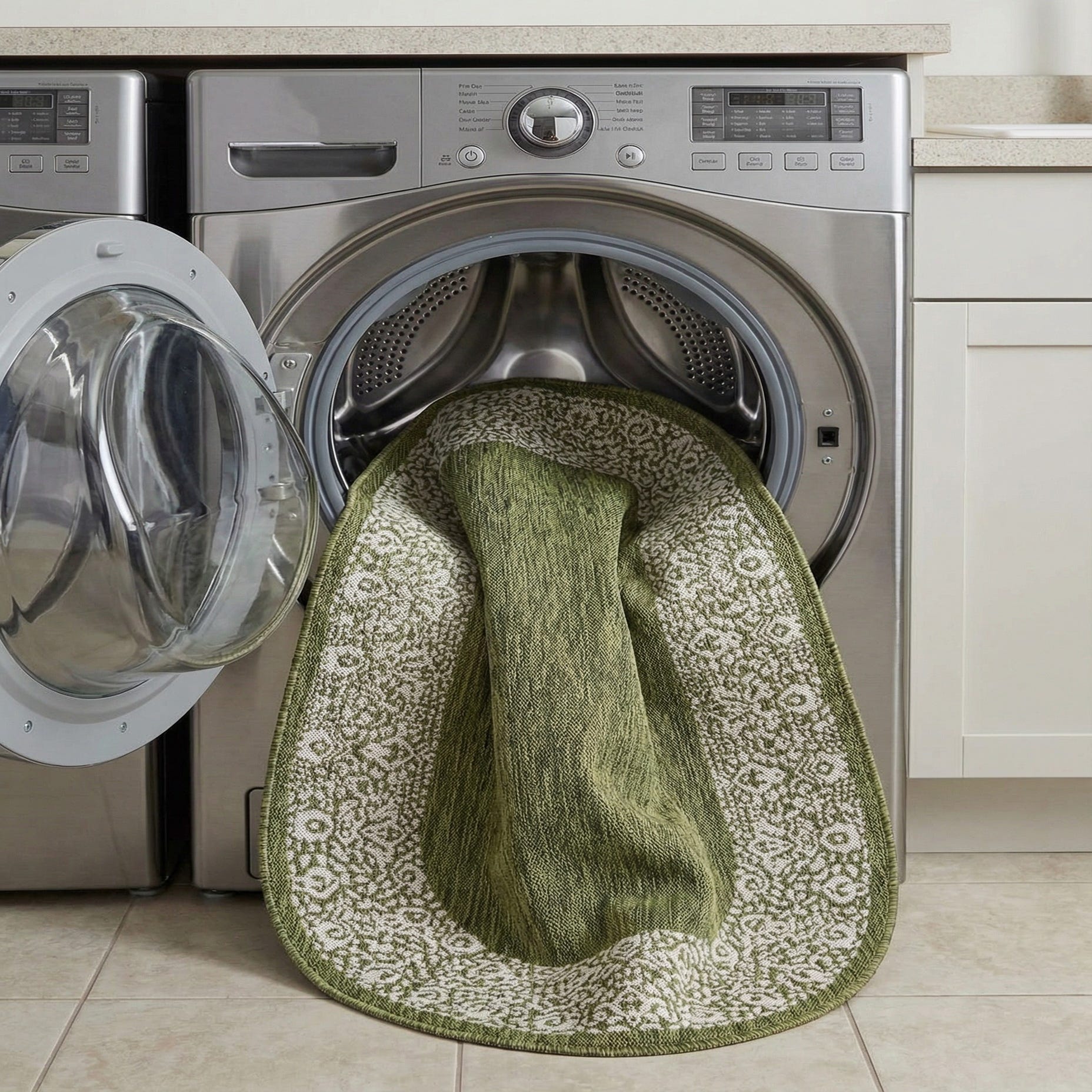 5' 3 x 8' Washable Border Indoor / Outdoor Oval Rug