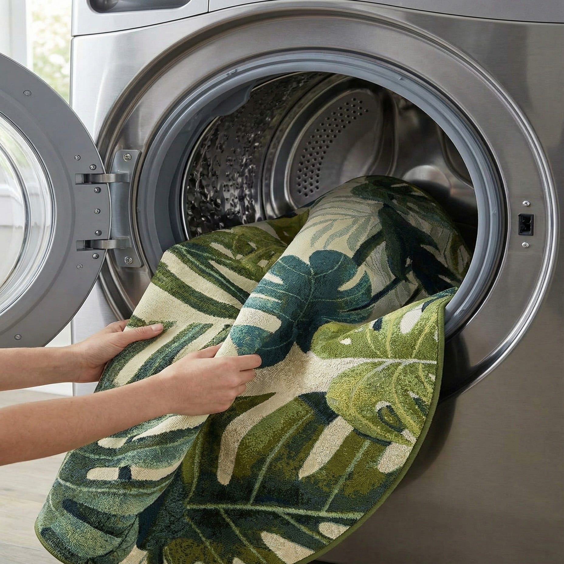 Detail image of 5' 3 x 8'  Washable Botanical Indoor / Outdoor Oval Rug