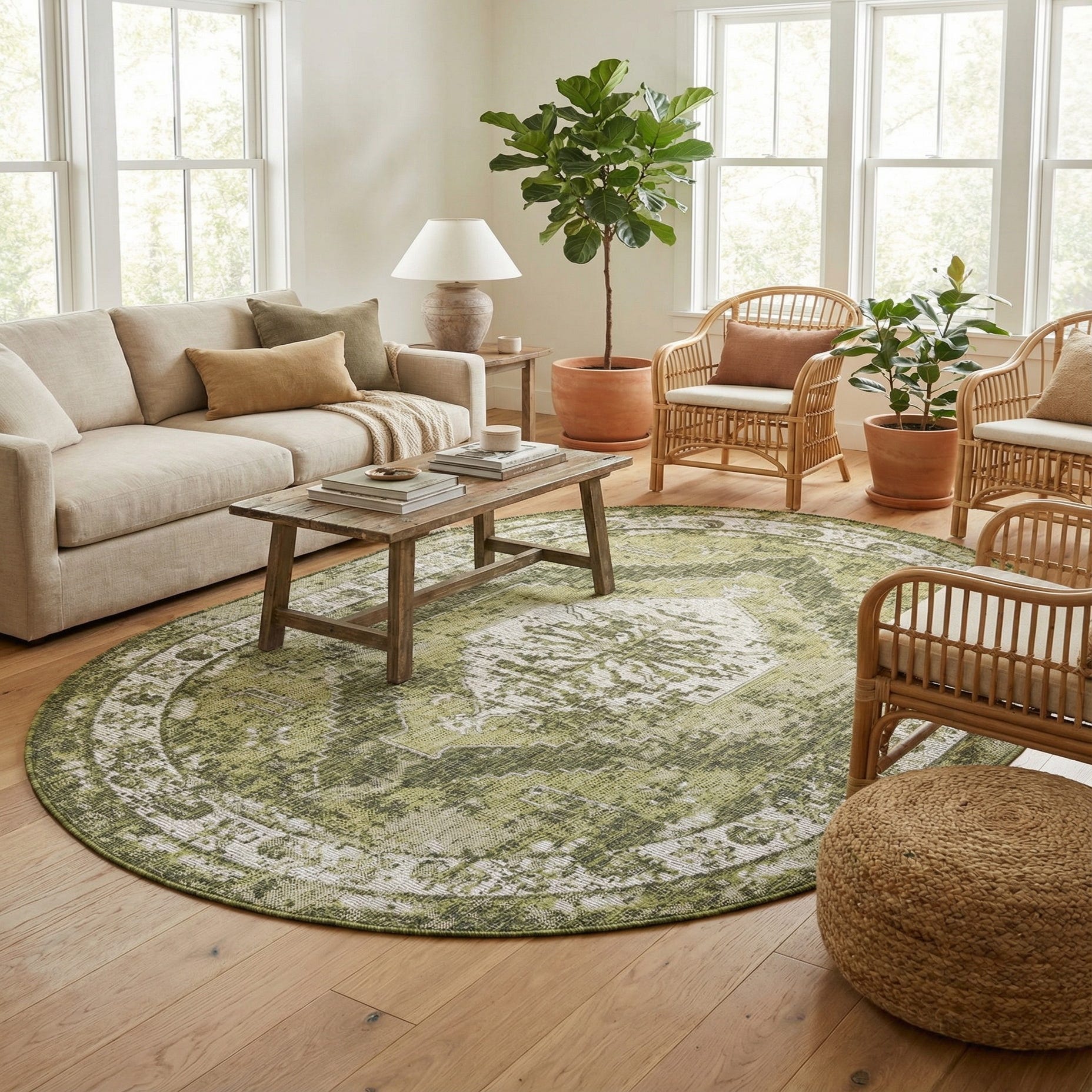5' 3 x 8' Washable Traditional Indoor / Outdoor Oval Rug