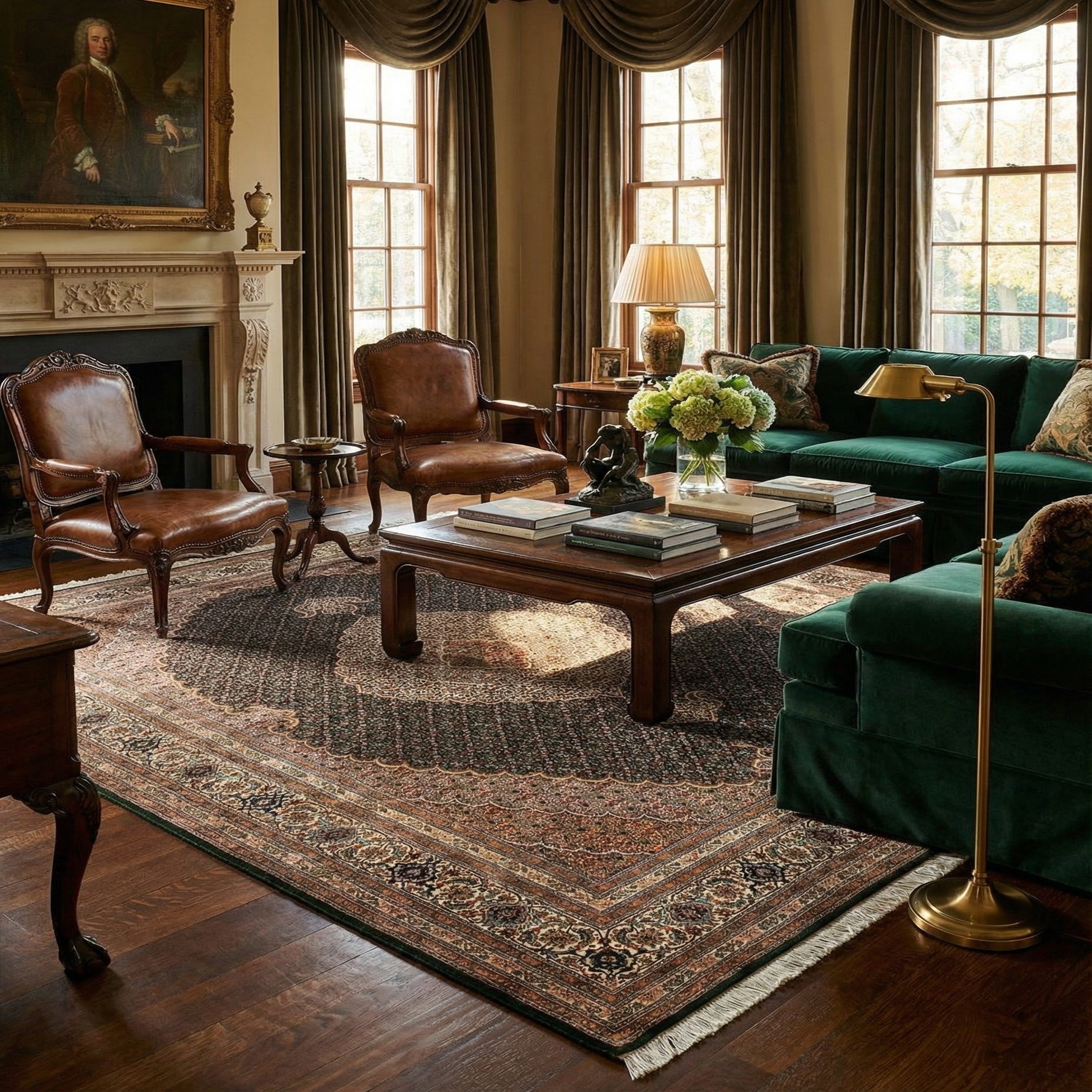 Primary color is Green. Colors in this rug include: Green, Green, Brown, Gray, Beige, Red, Blue, Pink, Cream.