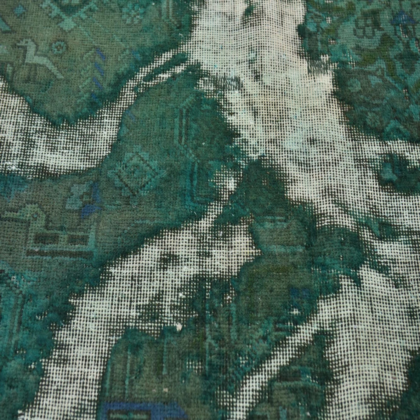 This Persian Ultra Vintage rug is an antique Persian Rug that has been washed, over-dyed, and then shaved down to a low pile. Look at the detail pictures to fully appreciate the uniqueness of this piece.