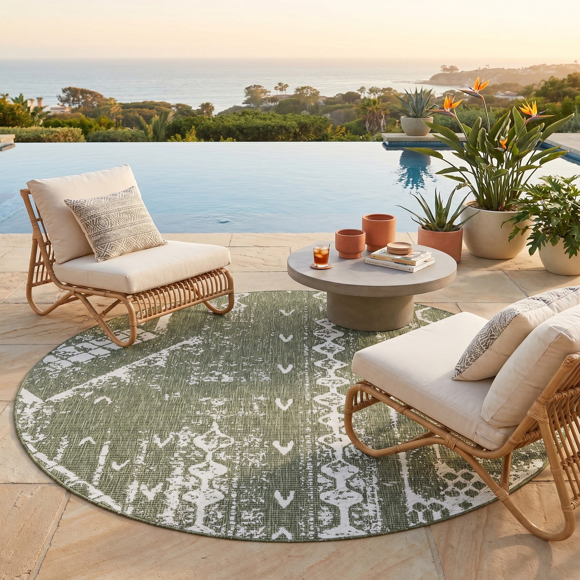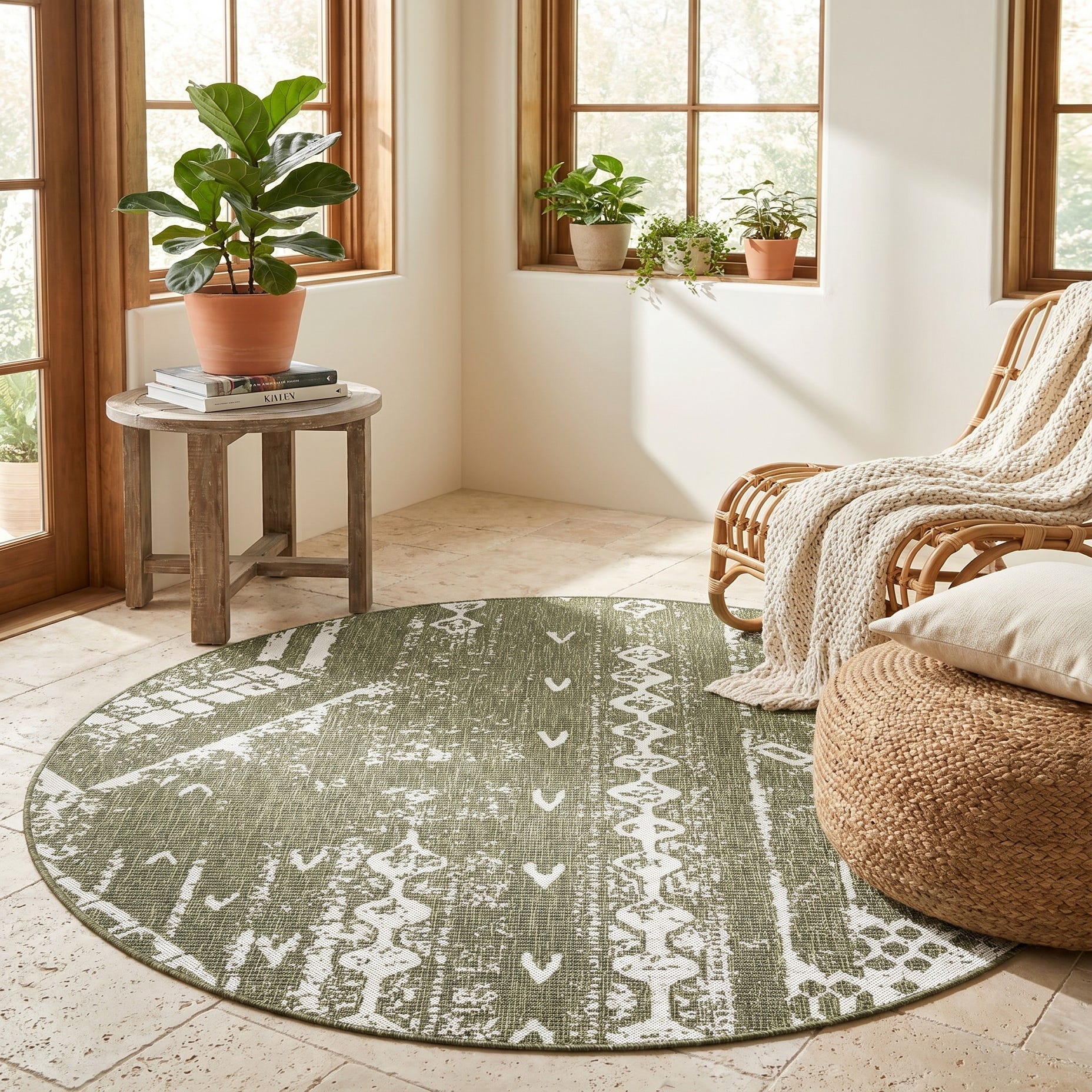 6' x 6' Easy-Clean Bohemian Indoor / Outdoor Round Rug