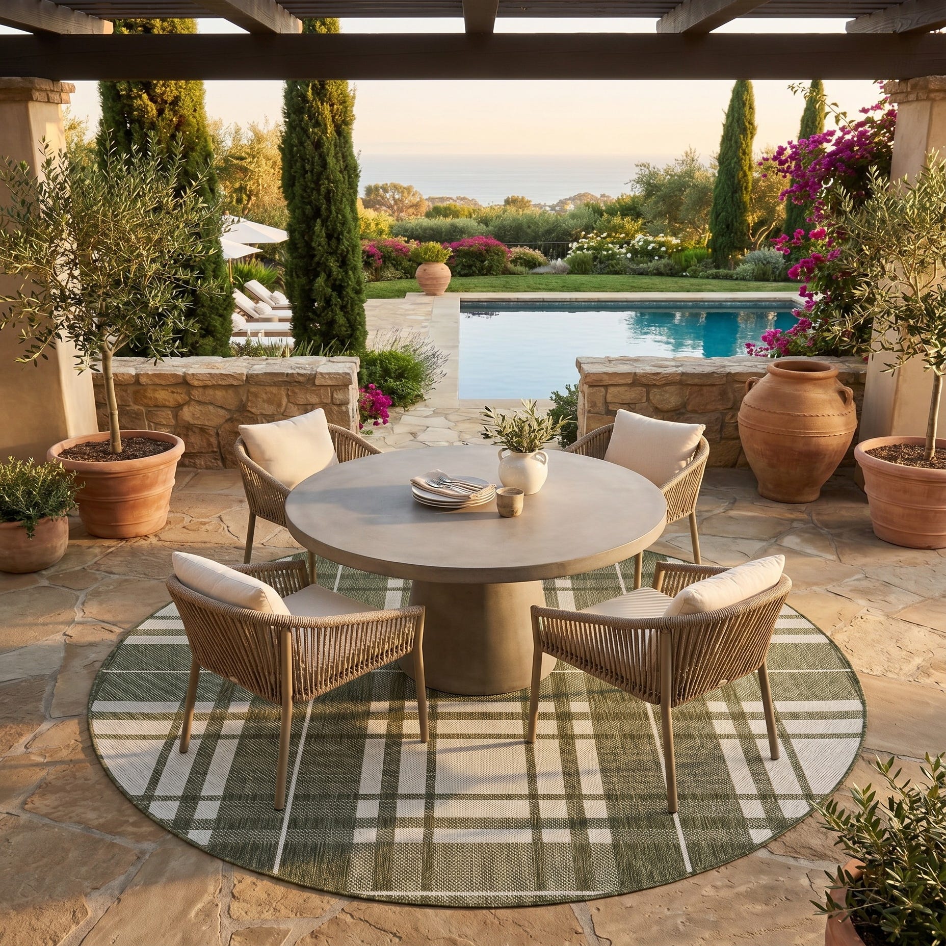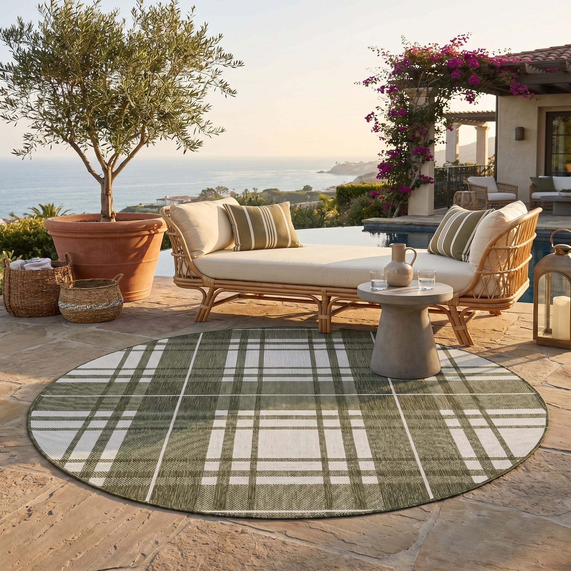 6' x 6' Easy-Clean Checkered Indoor / Outdoor Round Rug