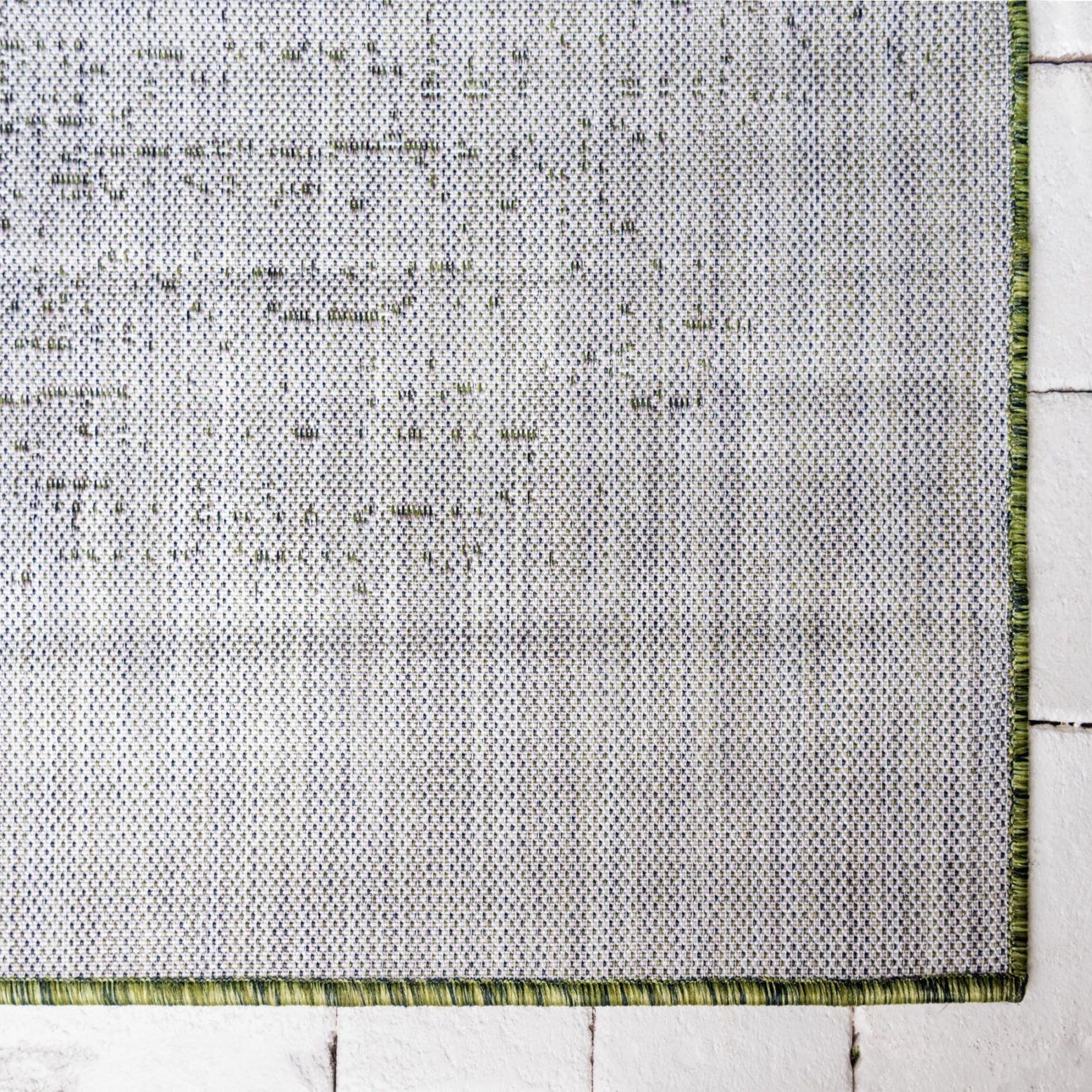 Primary color is Green. Colors in this rug include: Green, Gray, Ivory.