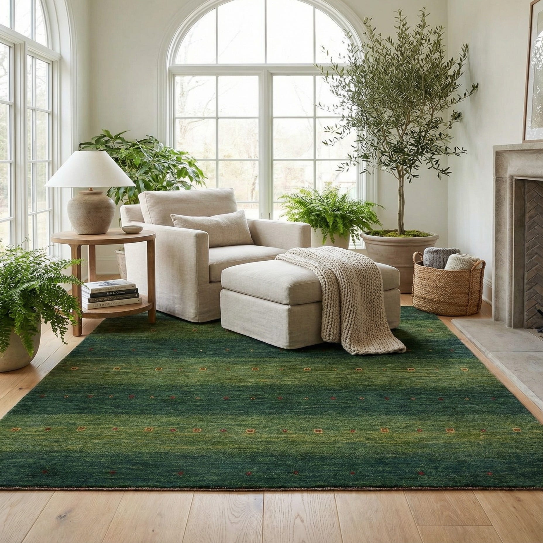 Primary color is Green. Colors in this rug include: Green, Green.