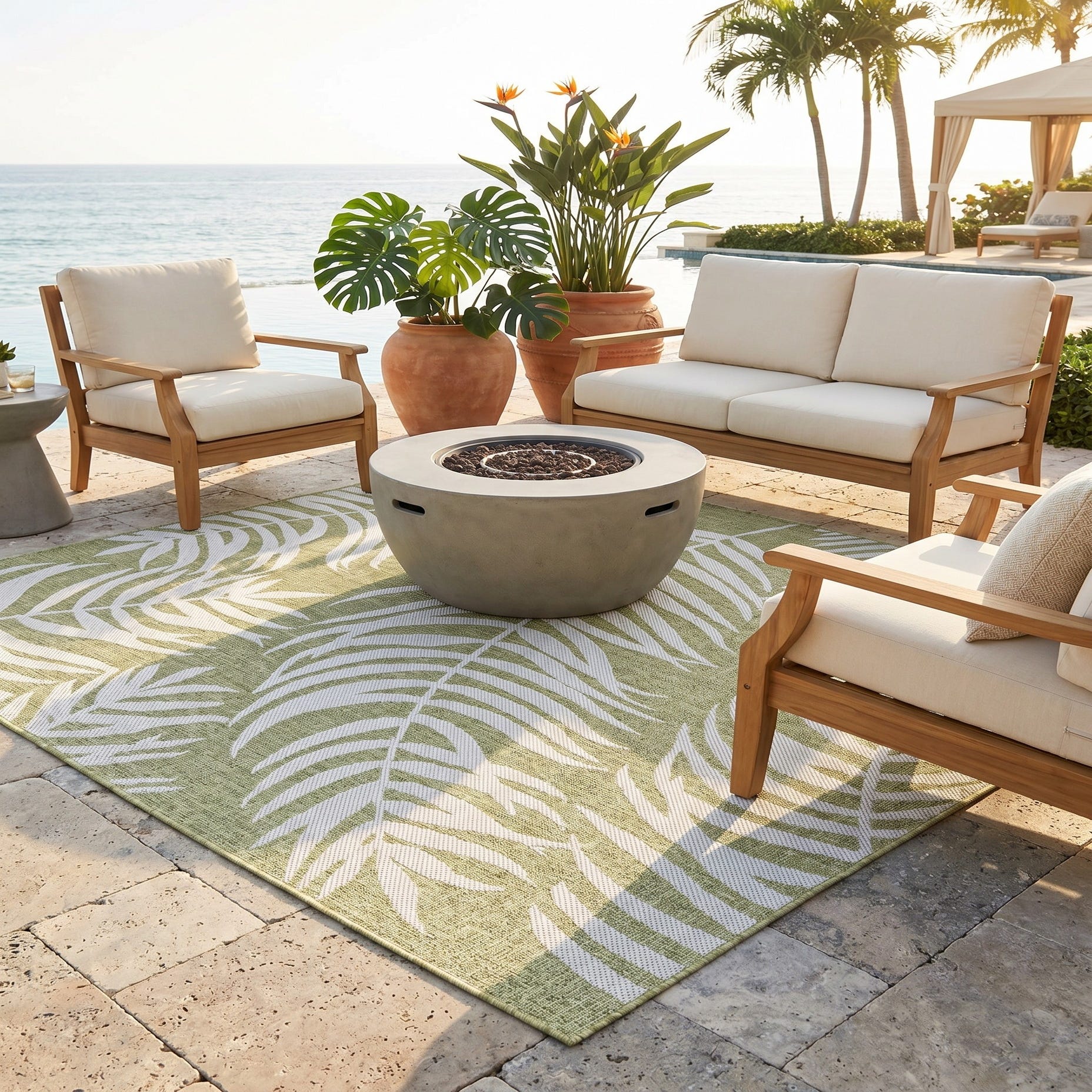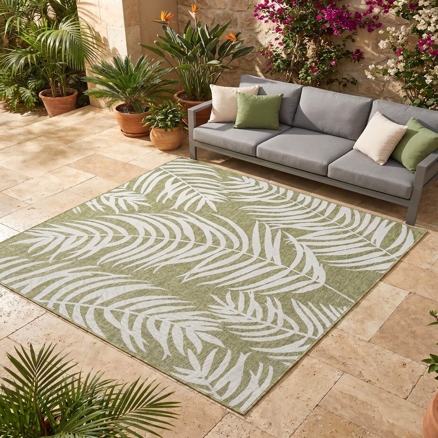 This rug is perfect for our back patio … now it really feels like an outdoor living room. We live near the beach so this was the perfect compliment to our beach/city backyard. It was expertly rolled up and after a couple of days all of the creases were relaxed and we couldn't love it more!