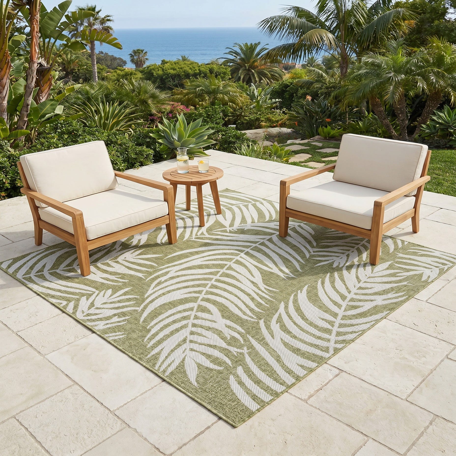 6' x 6' Easy-Clean Botanical Indoor / Outdoor Square Rug