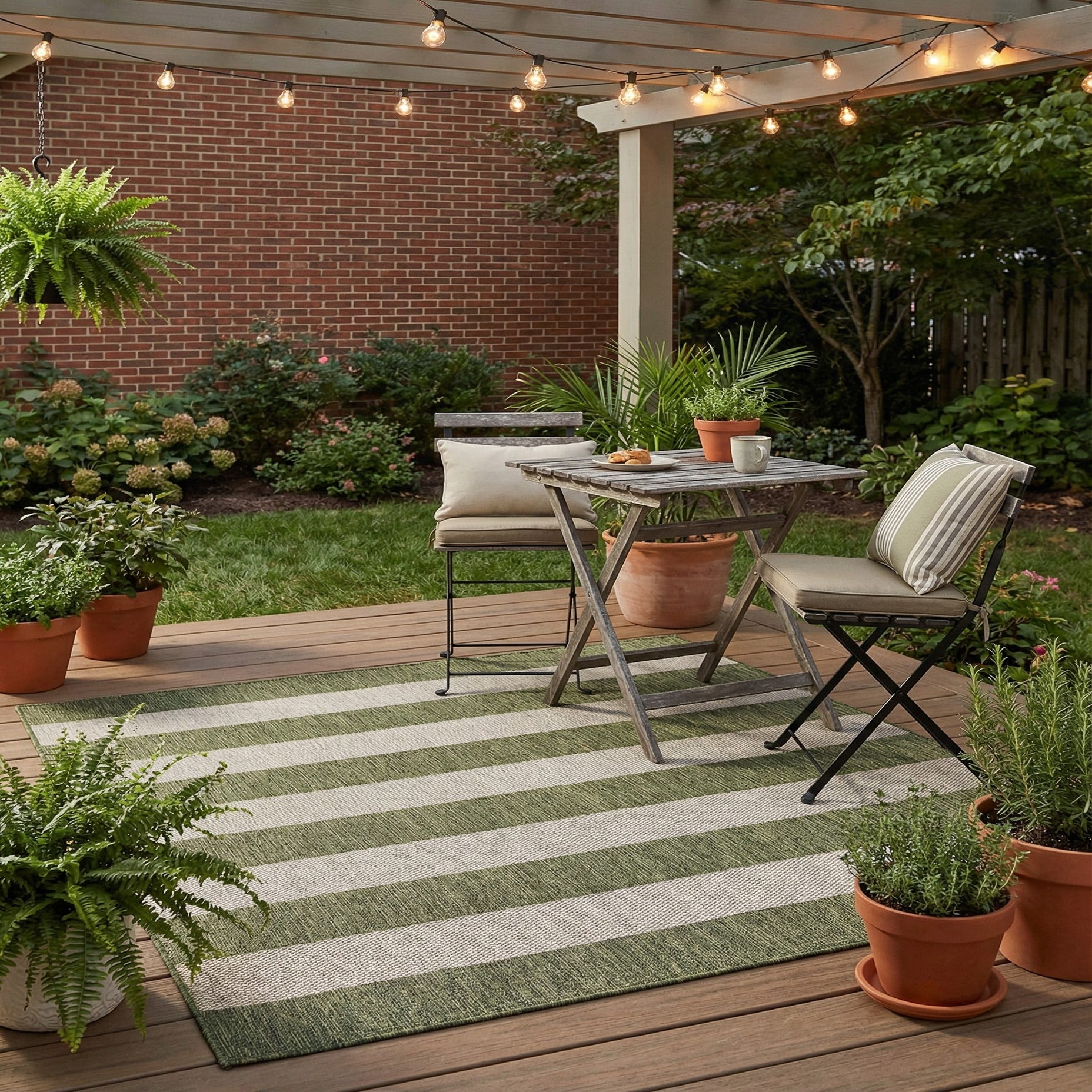 6' x 6' Washable Striped Indoor / Outdoor Square Rug