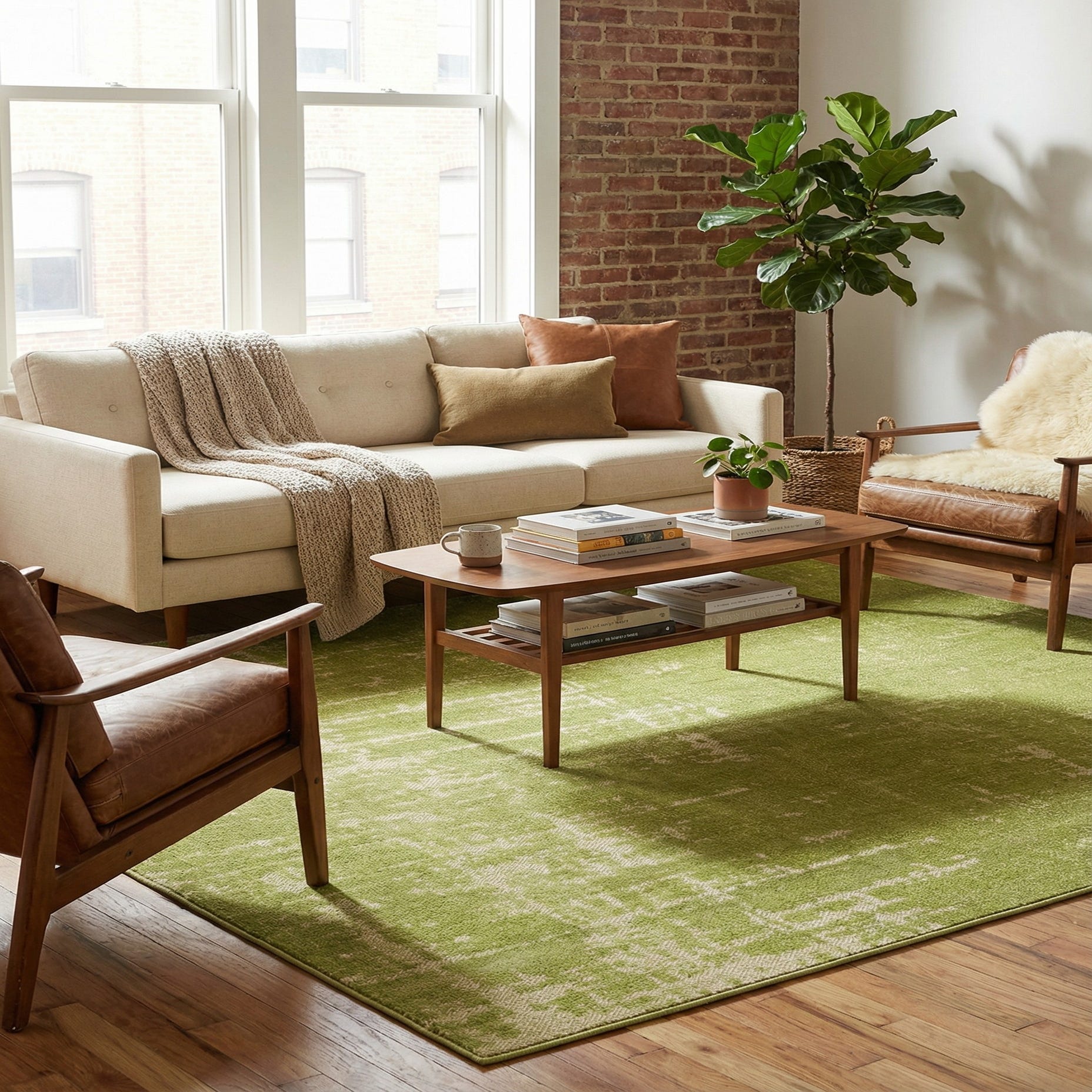 Primary color is Green. Colors in this rug include: Green, Ivory.