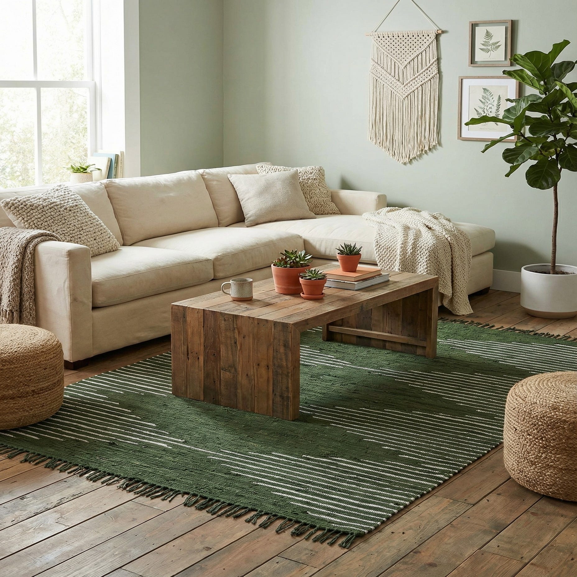 Primary color is Green. Colors in this rug include: Green, Ivory.
