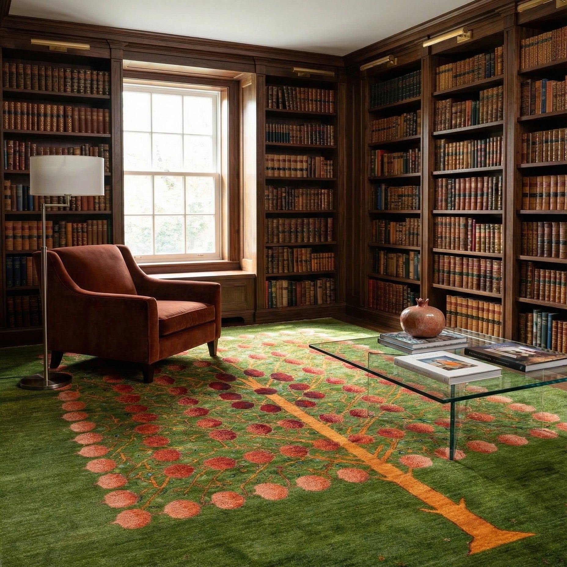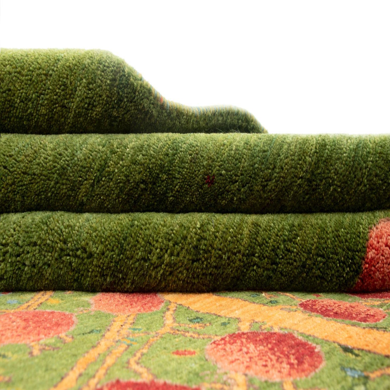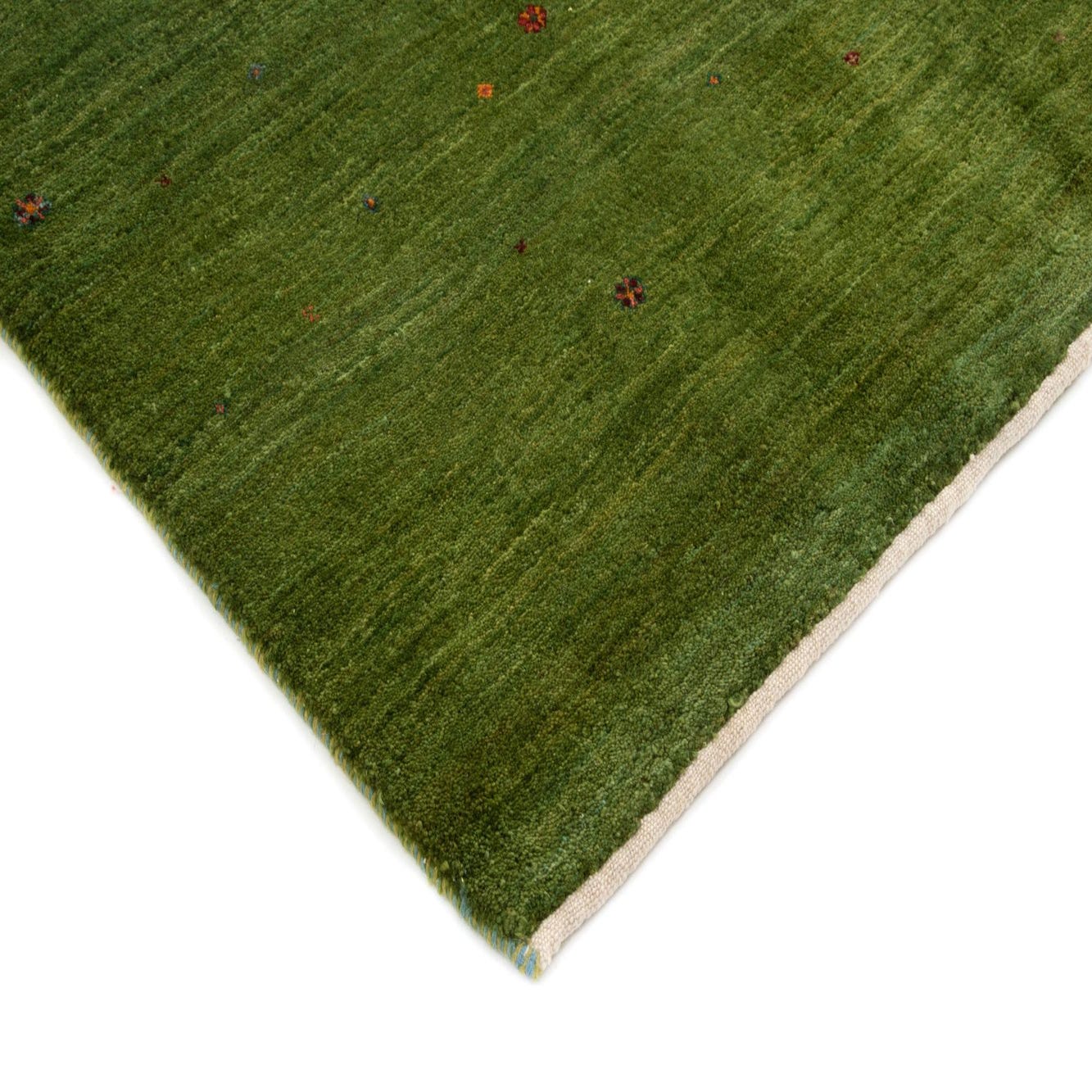 Primary color is Green. Colors in this rug include: Green, Red, Light Brown.
