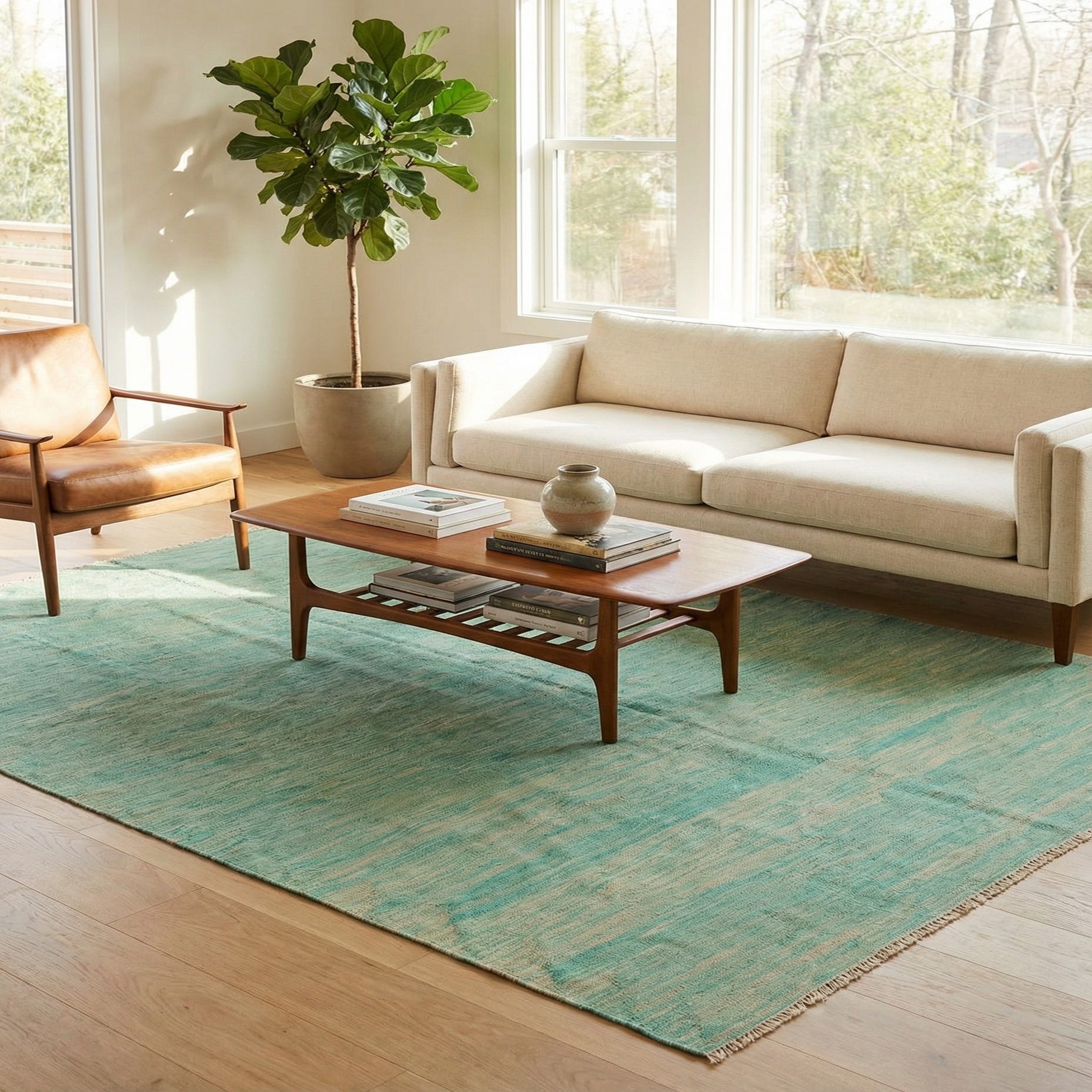 Primary color is Green. Colors in this rug include: Green, Beige.