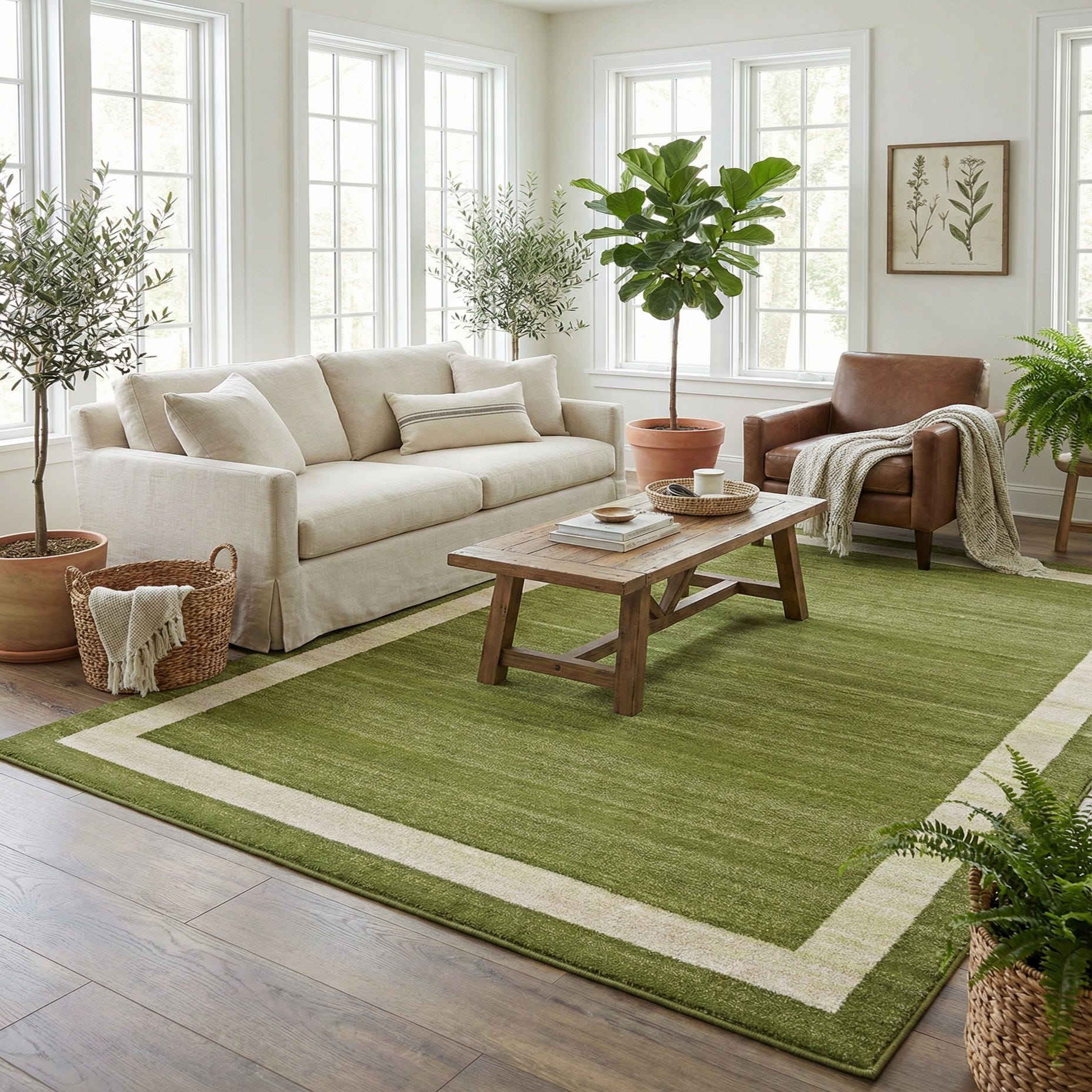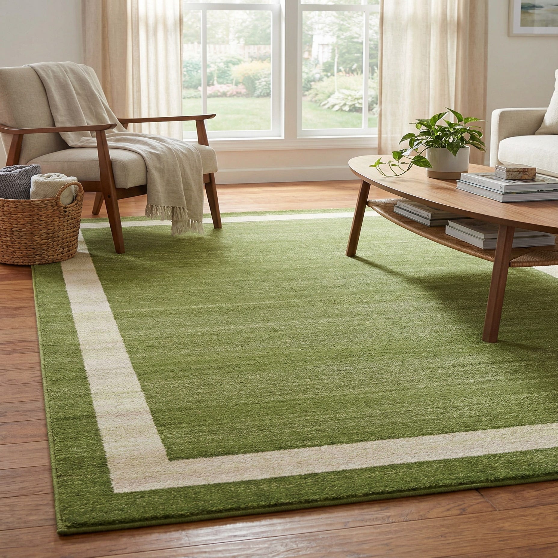 Primary color is Green. Colors in this rug include: Green, Ivory.