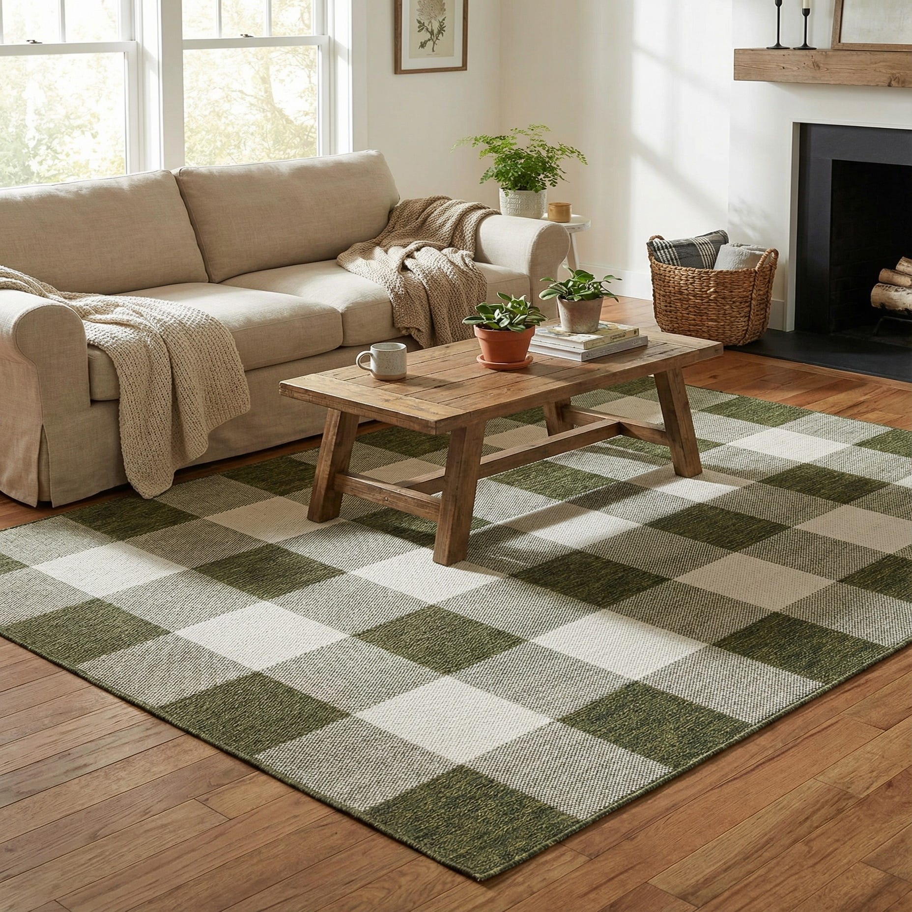 6' x 9' Washable Checkered Indoor / Outdoor Rug