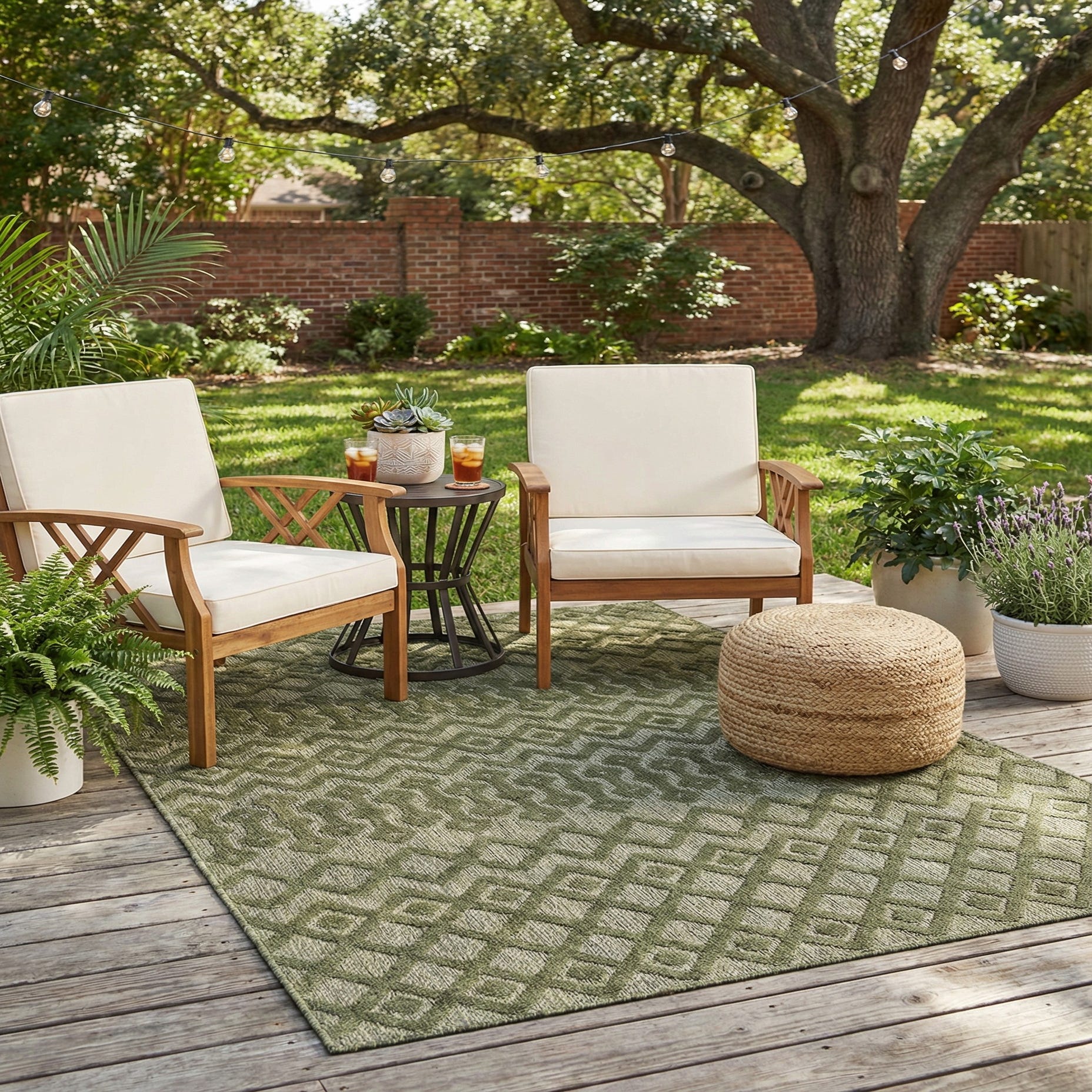6' x 9' Washable Trellis Textured Indoor / Outdoor Rug
