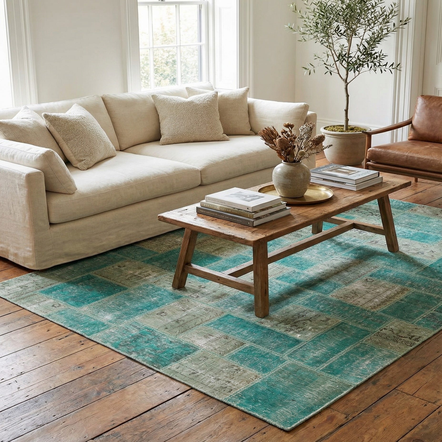 Primary color is Green. Colors in this rug include: Green, Beige, Ivory, Light Green, Olive, Turquoise.