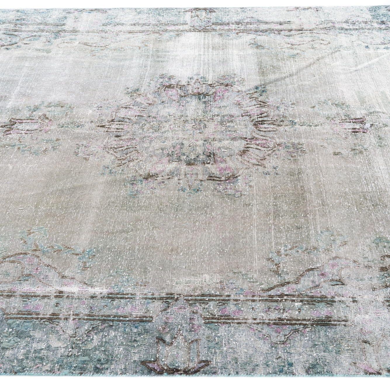 This Persian Ultra Vintage rug is an antique Persian Rug that has been washed, over-dyed, and then shaved down to a low pile. Look at the detail pictures to fully appreciate the uniqueness of this piece.