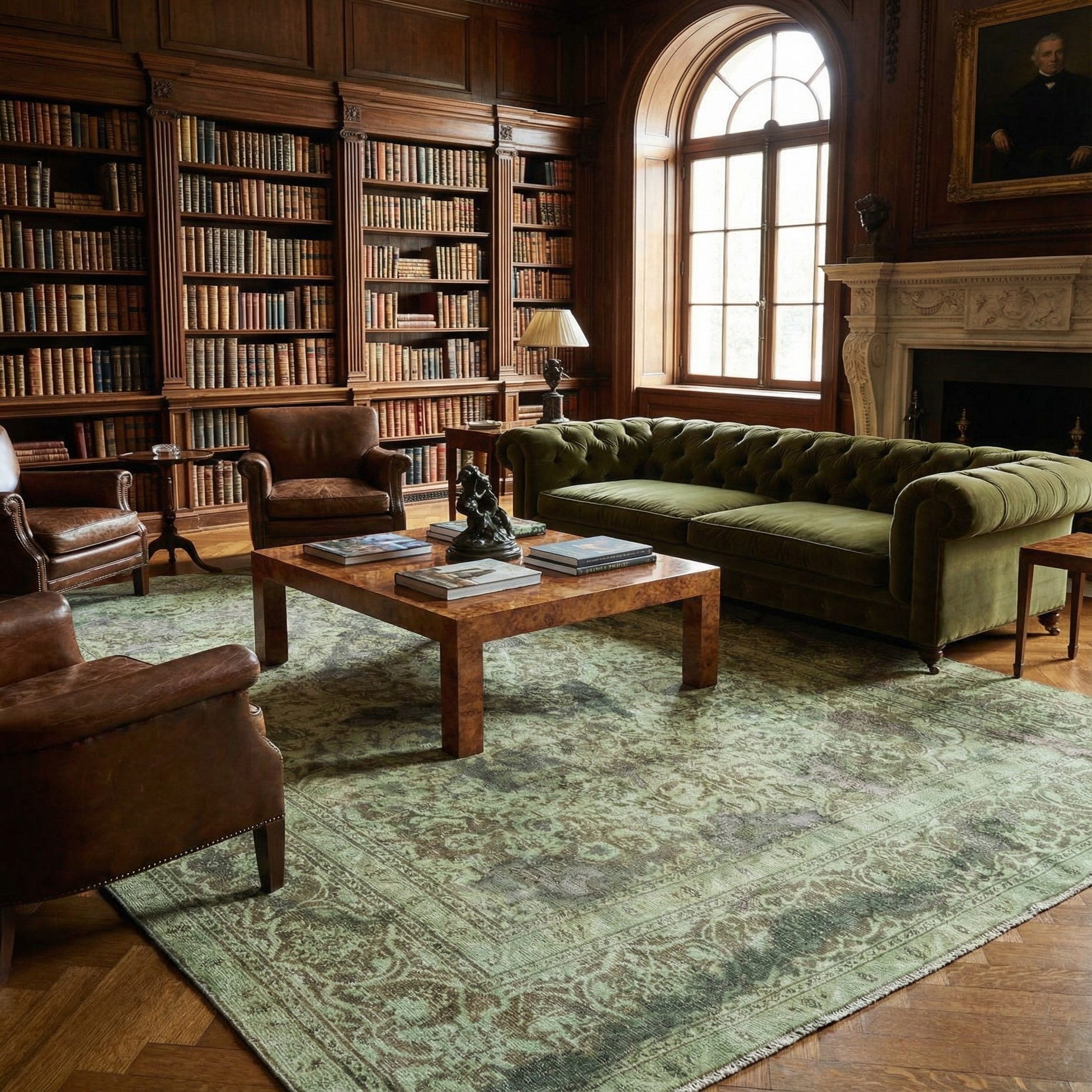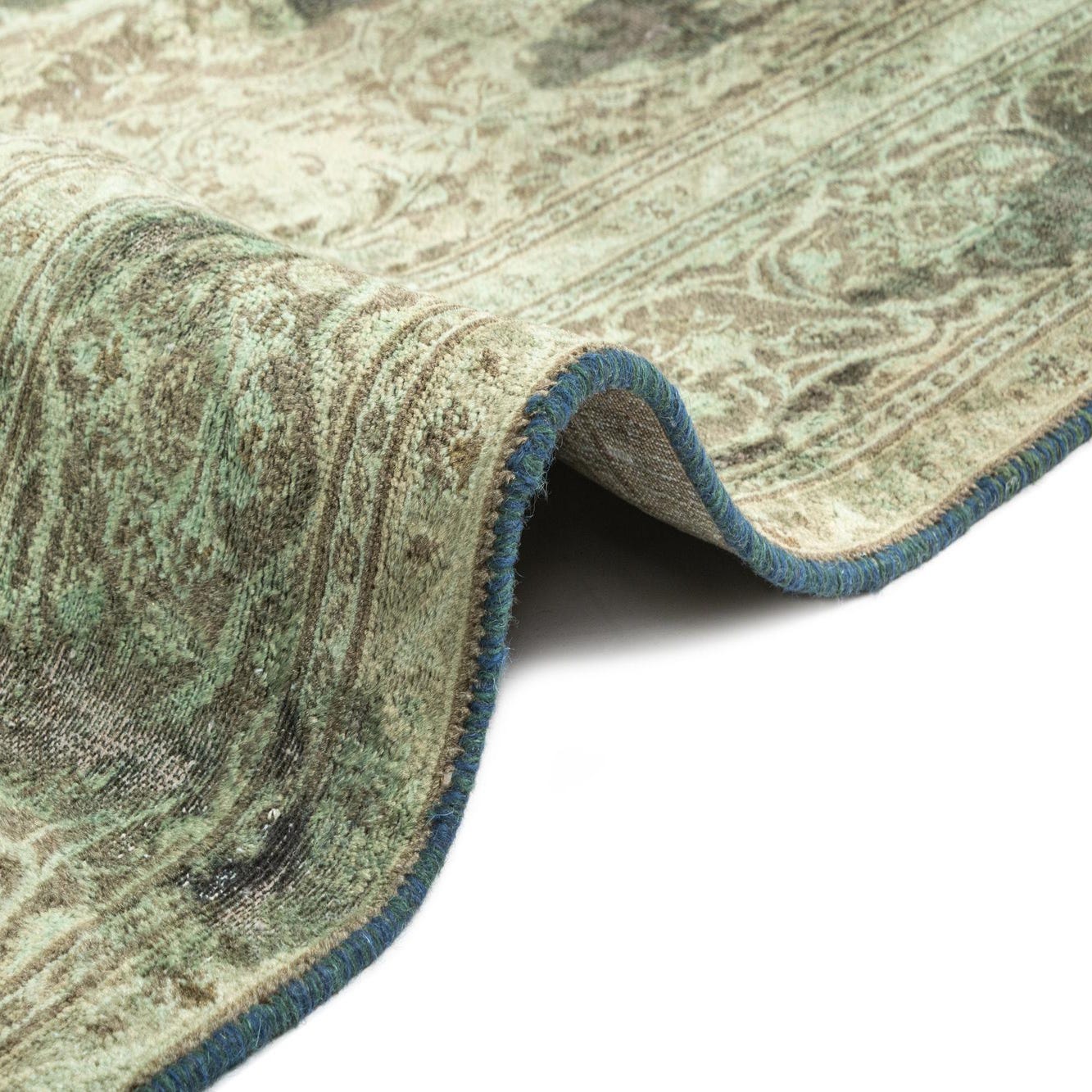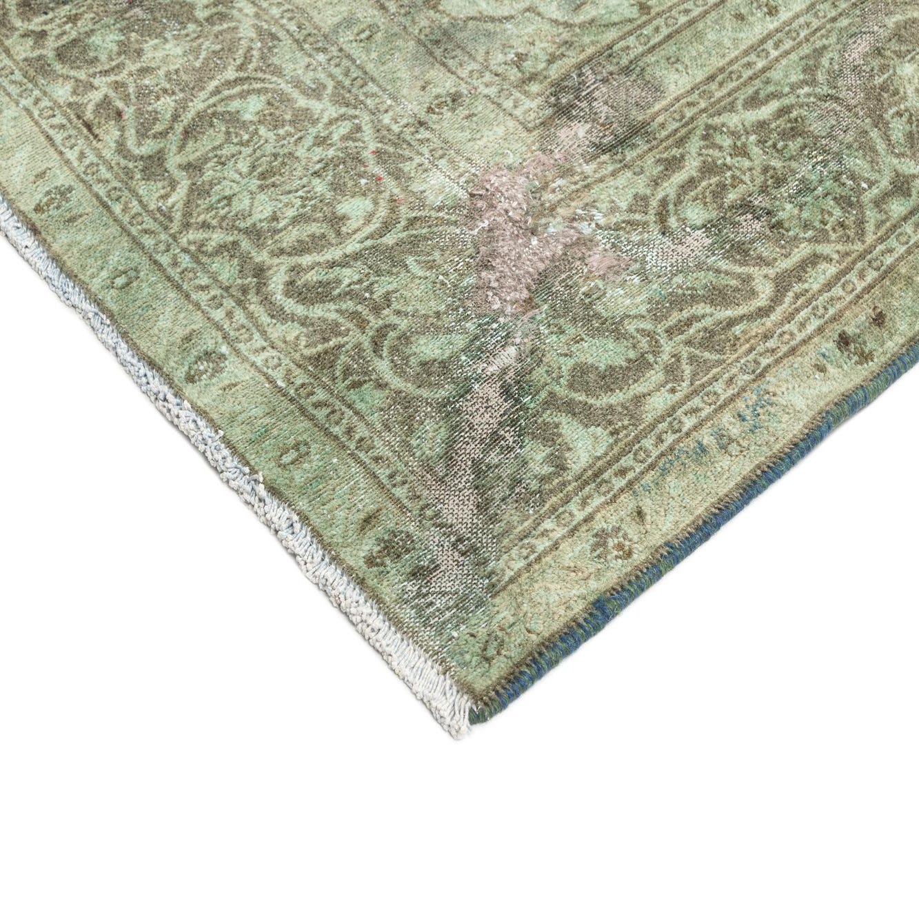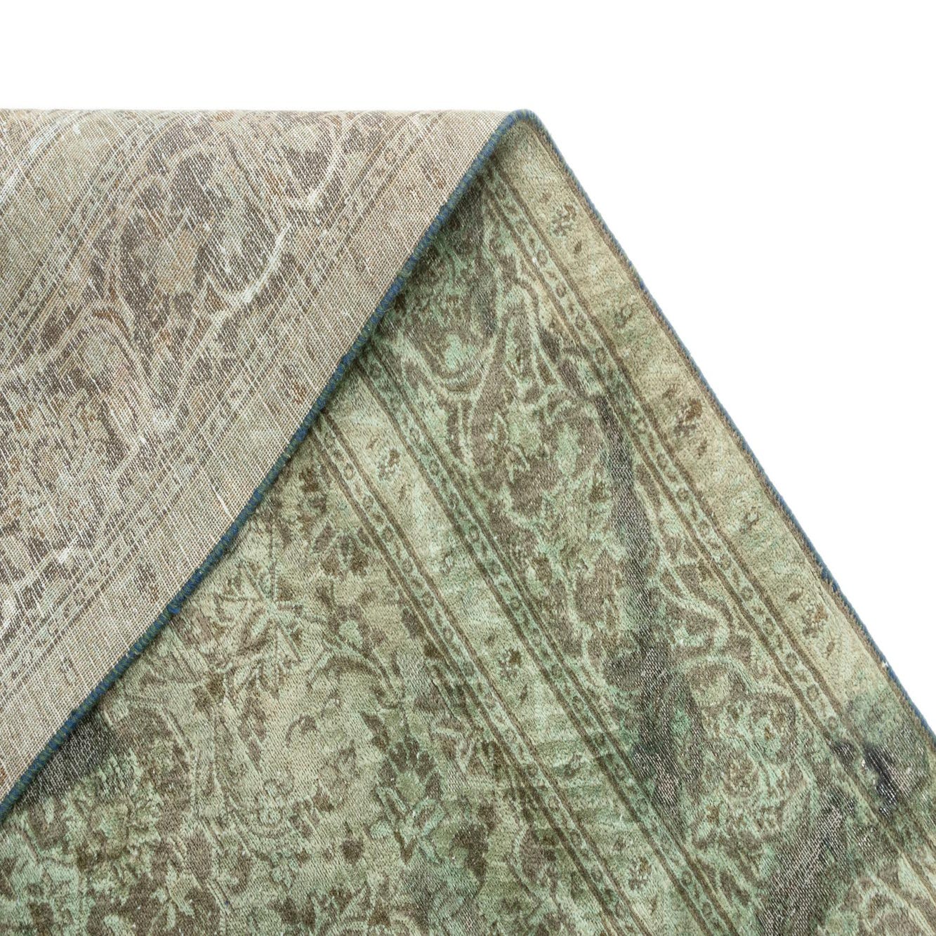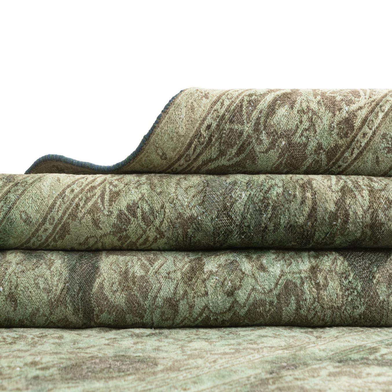 Primary color is Green. Colors in this rug include: Green, Brown.